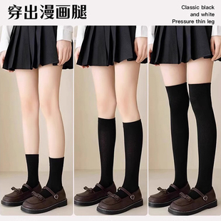 黑色过膝袜子女款 长筒袜春天压力显瘦小腿袜高筒 堆堆中筒袜秋冬季