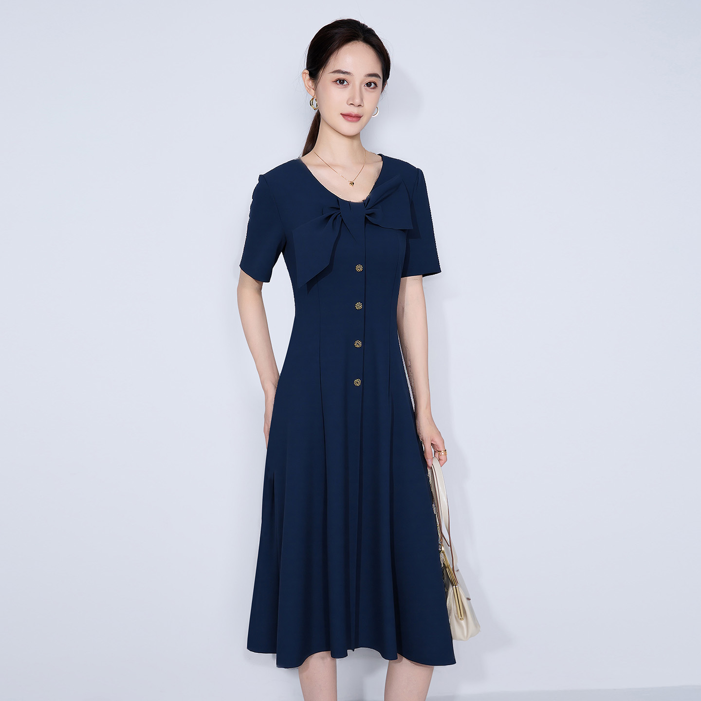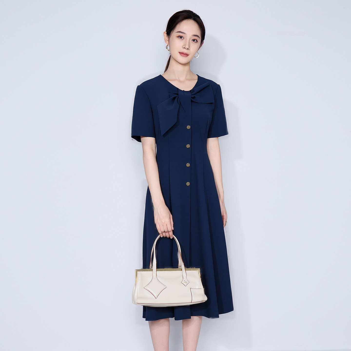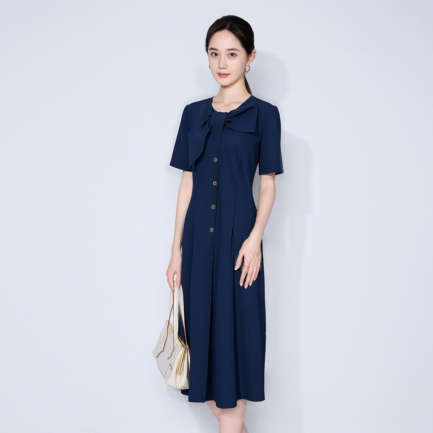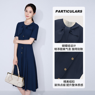 简约短袖 珂莱蒂尔2025新款 连衣裙优雅气质收腰A字裙 乔欣同款