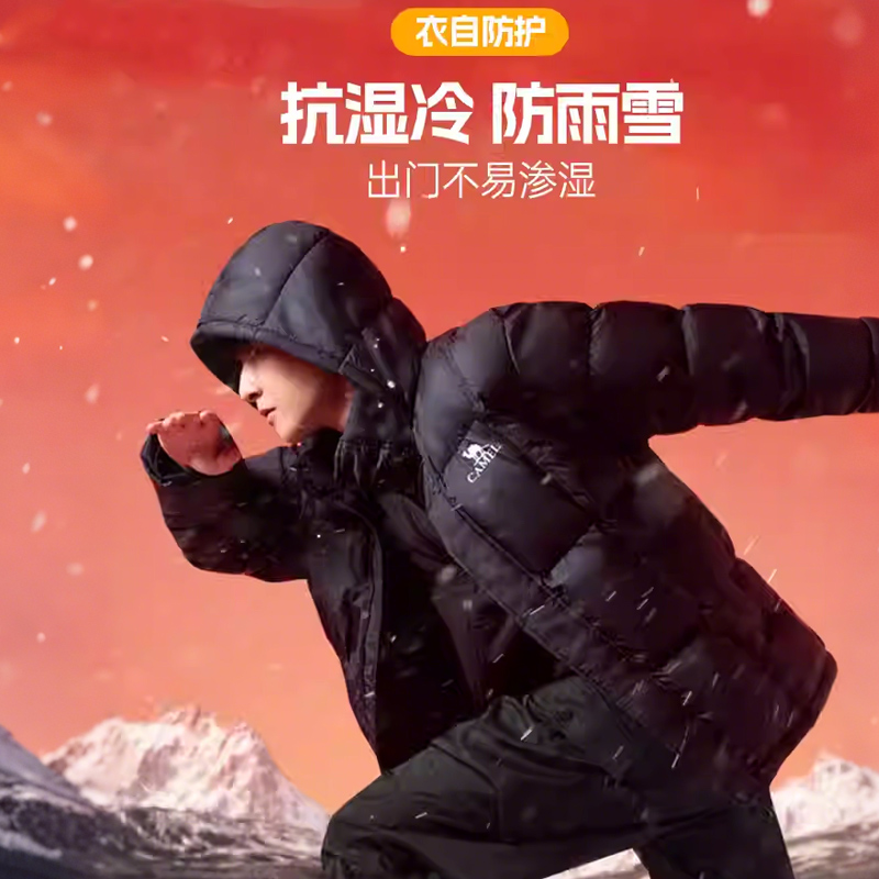 camel骆驼北影大被子户外黑色长款 羽绒服冬加厚小个子面包服男女