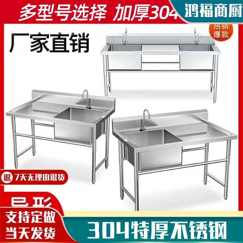 304不锈钢水槽厨房台面一体池商用洗菜池洗碗洗衣槽水池洗手台盆