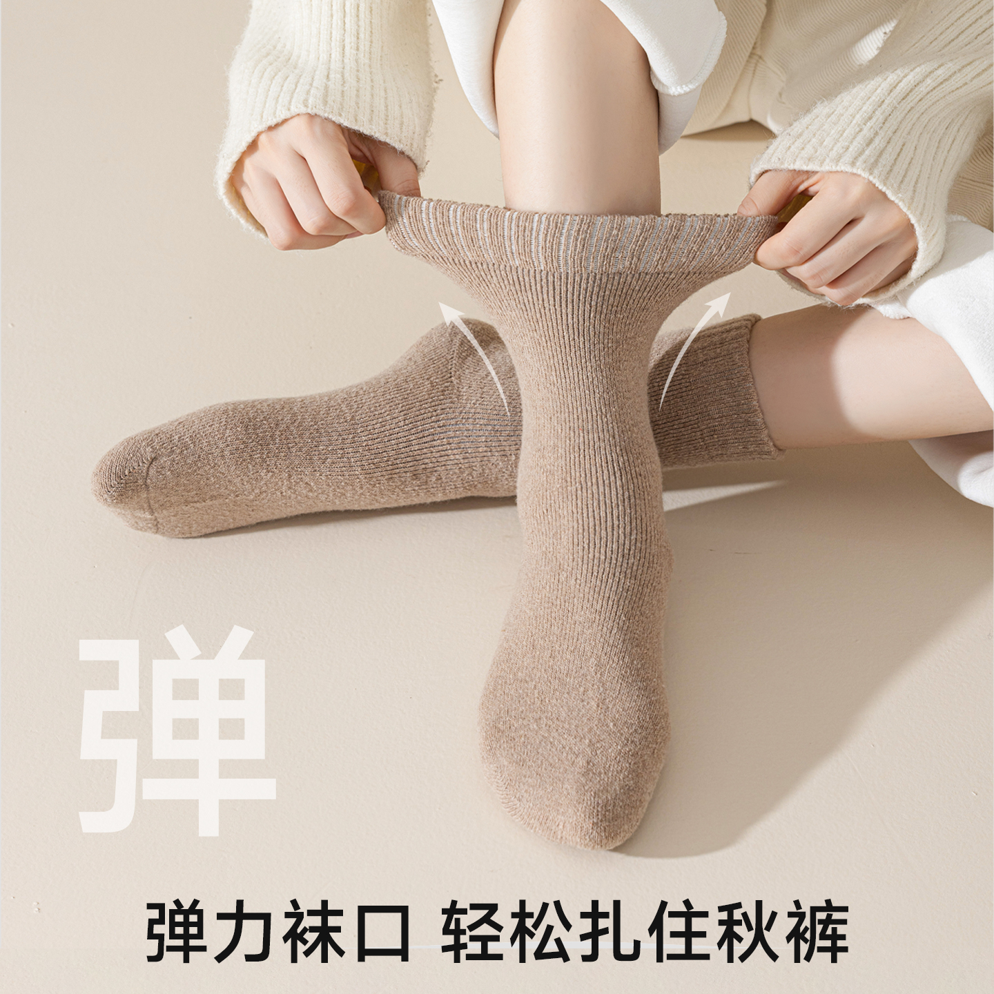 34%羊毛袜女冬季 中筒袜加绒保暖棉袜羊绒月子袜长筒袜子女 加厚款