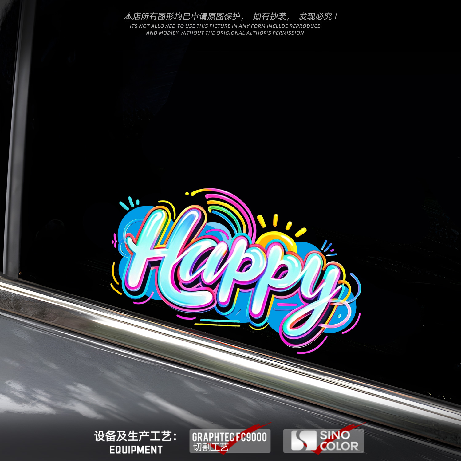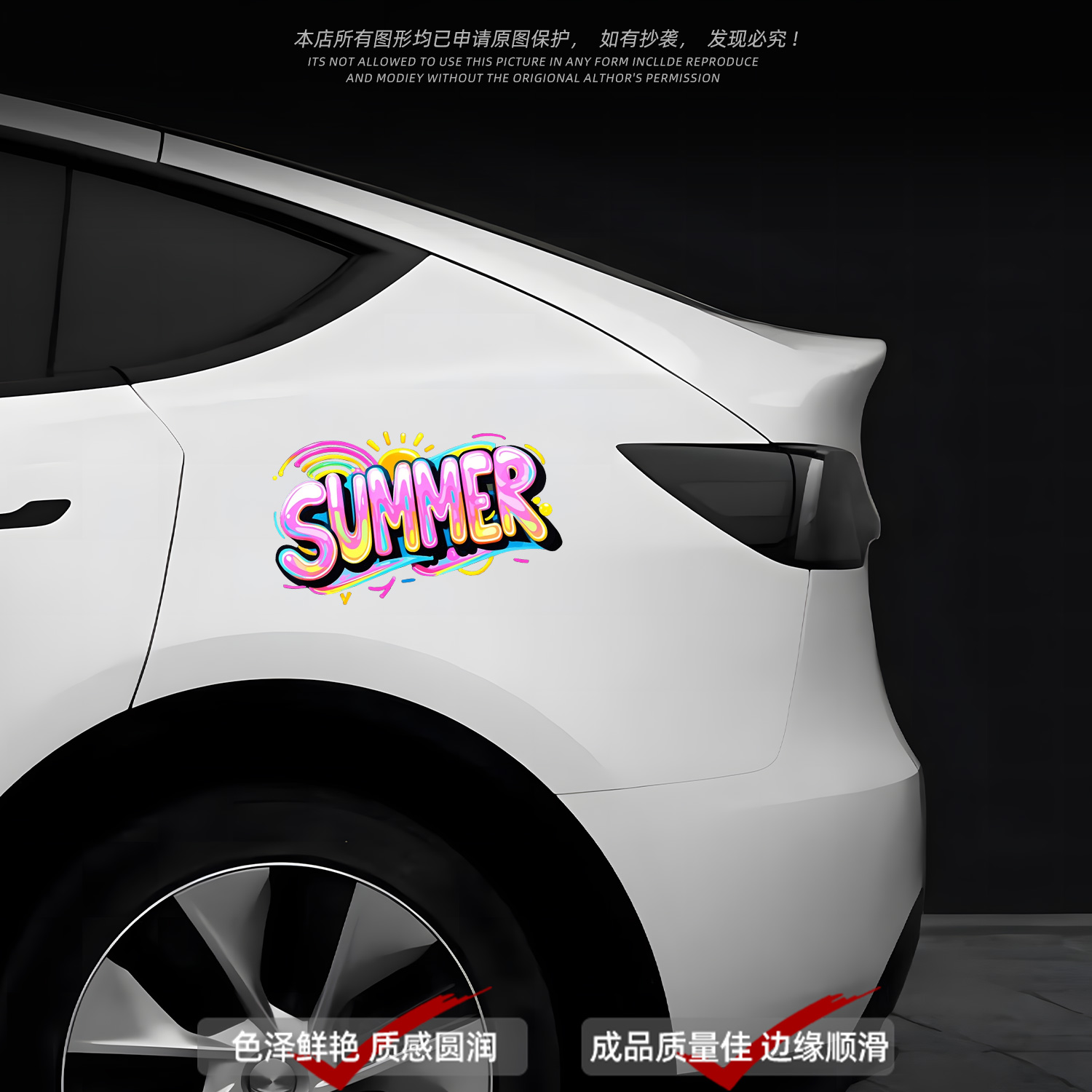 涂装 汽车贴纸多巴胺字母涂鸦电动摩托车身划痕遮挡装 饰防水个性