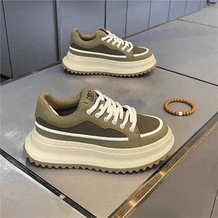 潮流百搭休闲青少年皮面防水防滑运动厚底内增高老爹潮鞋 男鞋 秋季