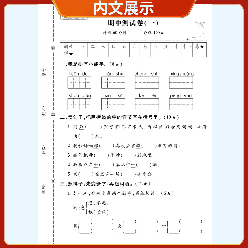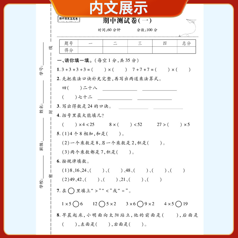 山东画报出版 测试卷二年级上册语文数学五四制 社 期中期末真题单元 2025秋新版