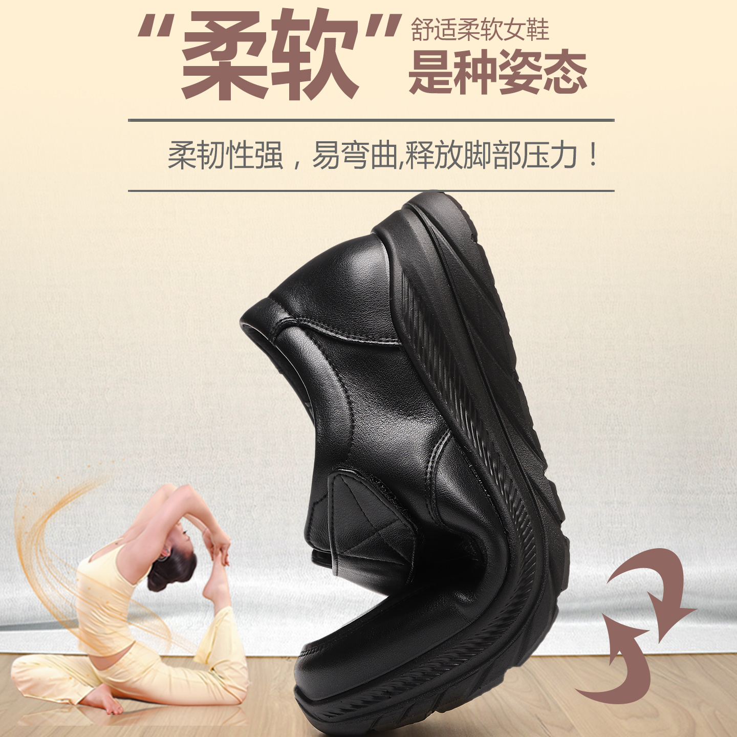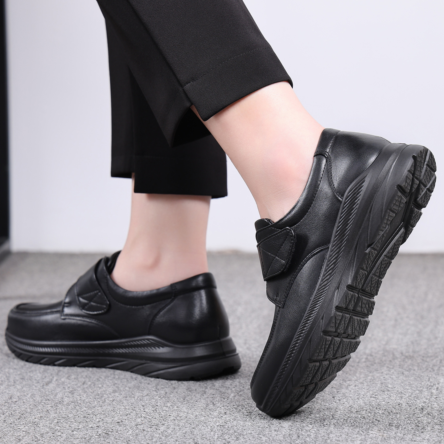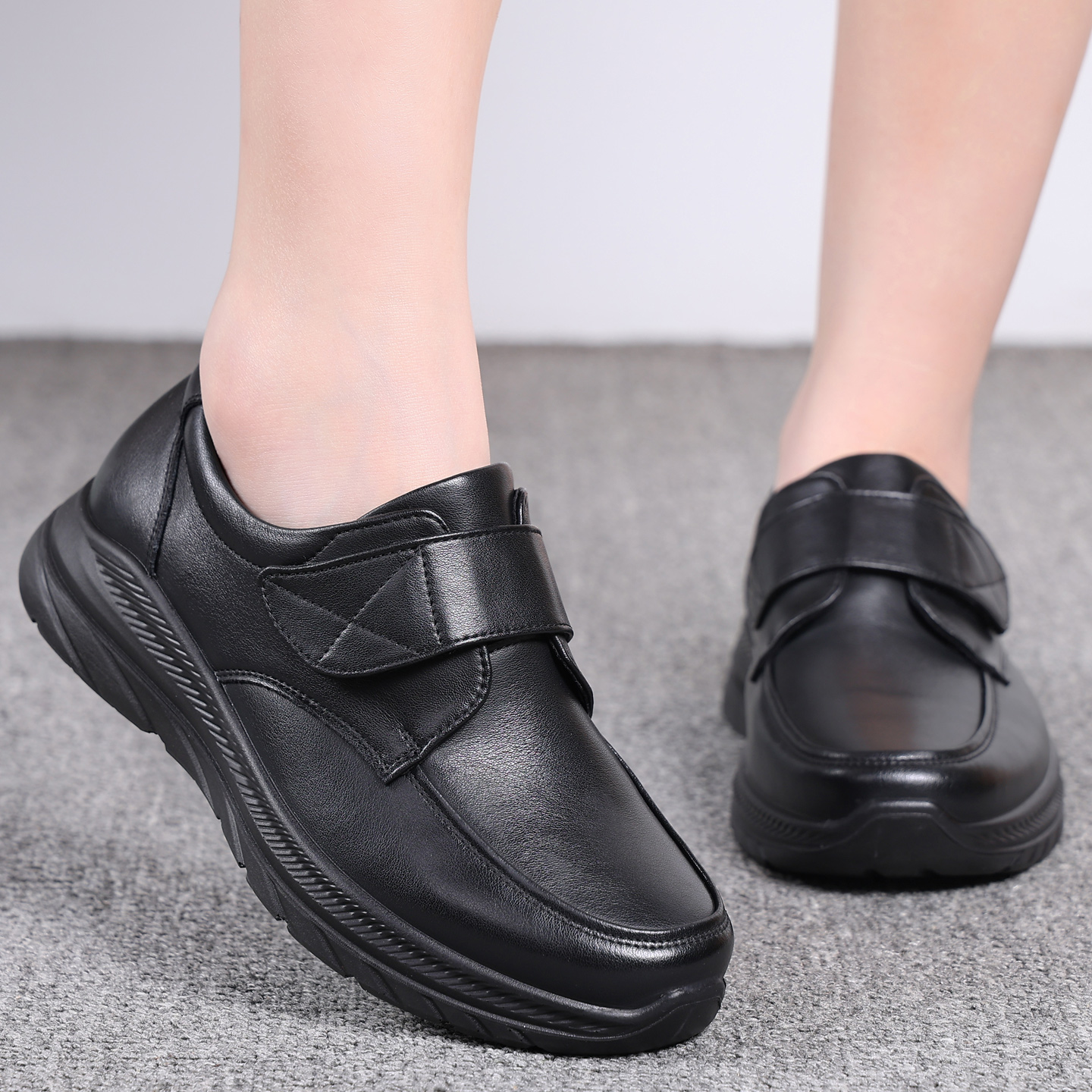 黑色皮鞋 女鞋 秋 厨房真皮软底中老年防滑妈妈鞋 女士久站不累工作鞋