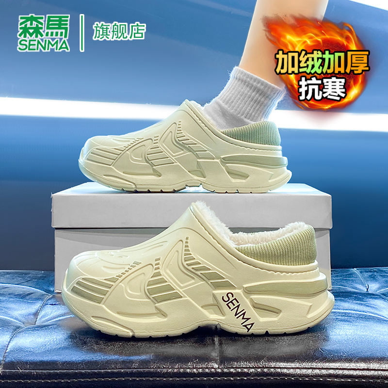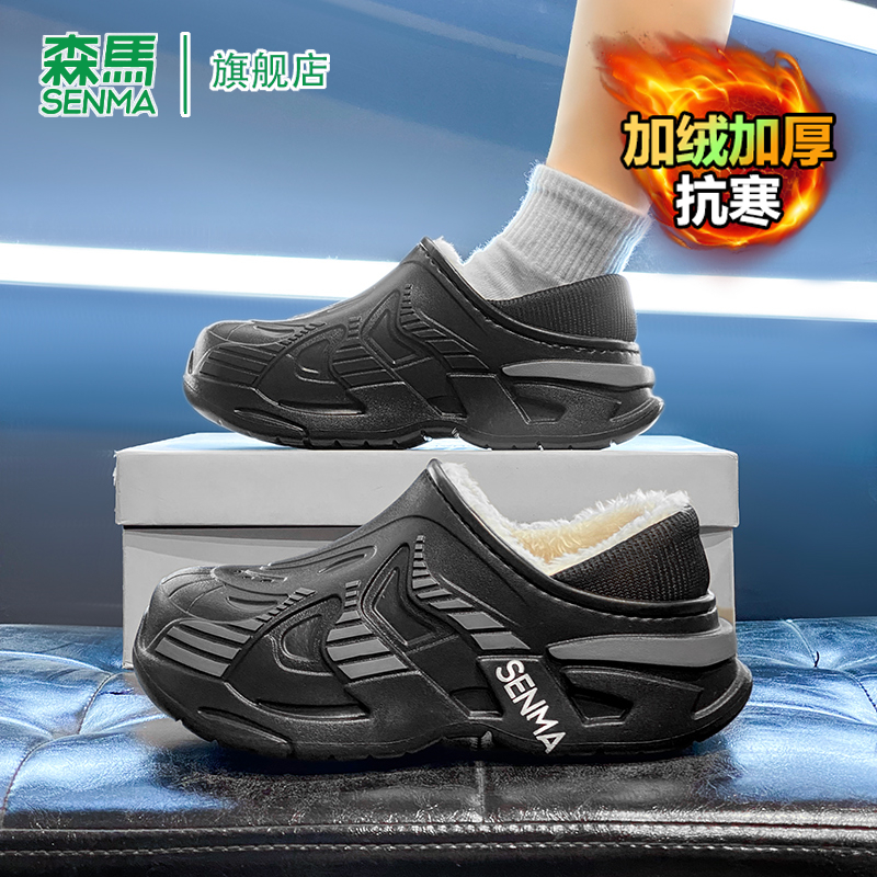 包跟抗寒情侣居家毛毛包头拖 加绒内里保暖舒适冬季 森马棉拖鞋 男款