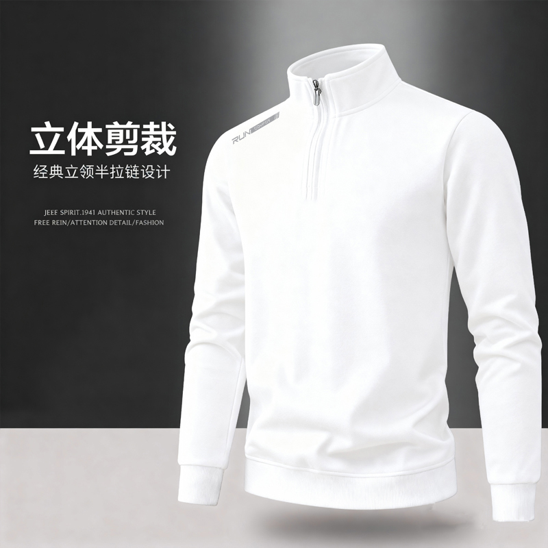 卫衣男2025秋款 加厚立领T恤潮流百搭弹力 半拉链宽松高级感秋季