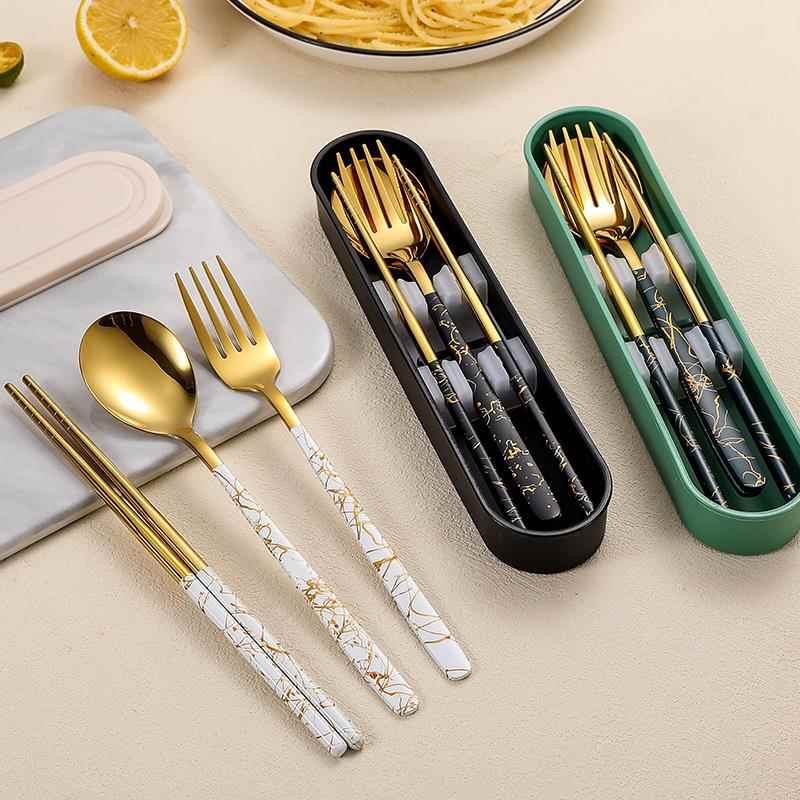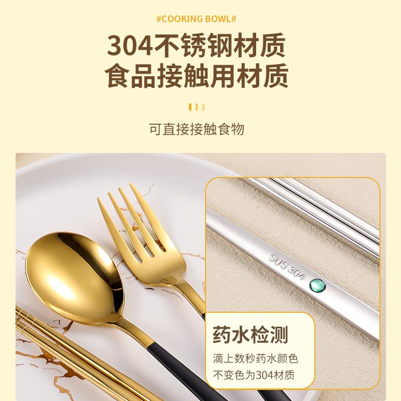 可携式 316不锈钢餐具三件套学生一人食定制logo刻字 筷子勺子套装