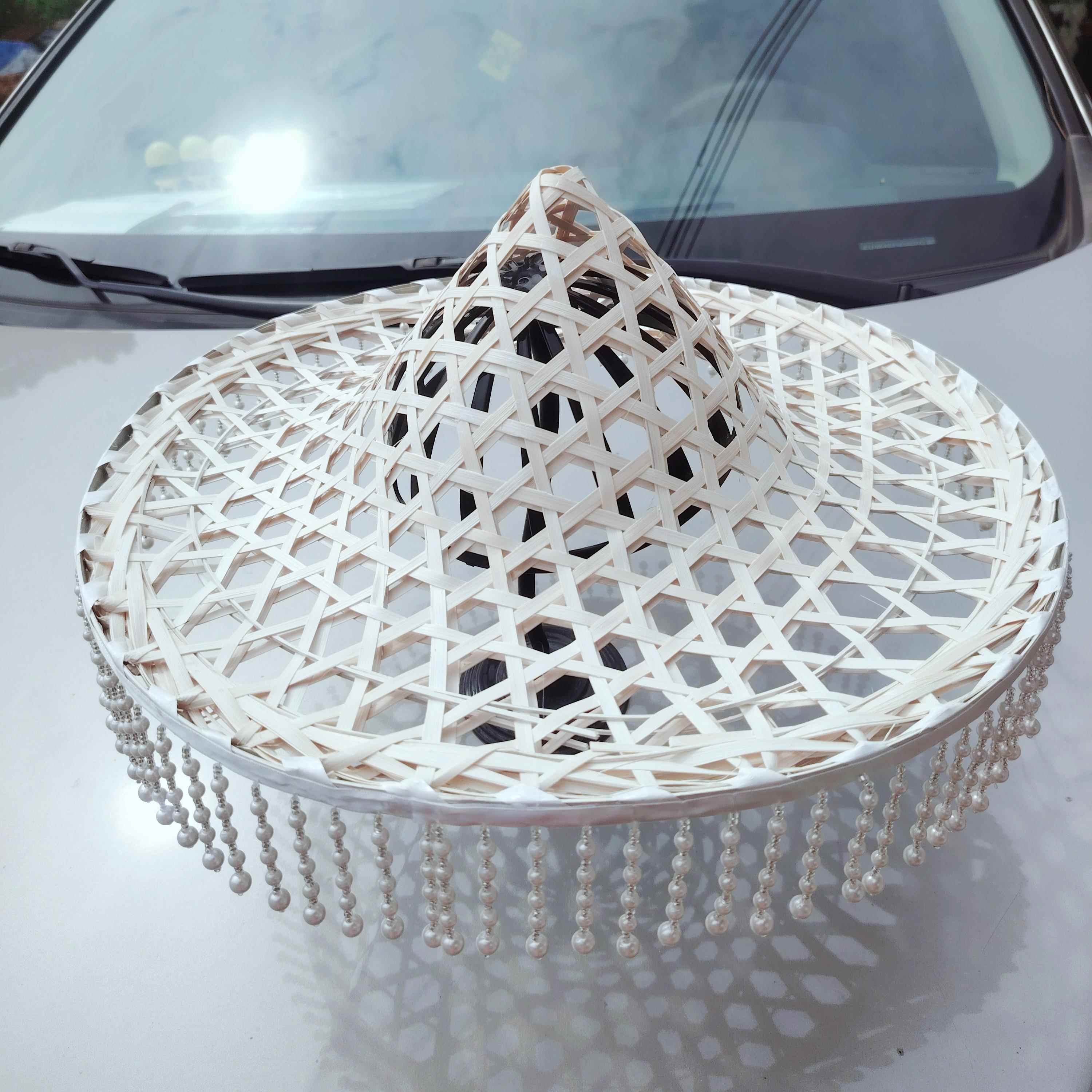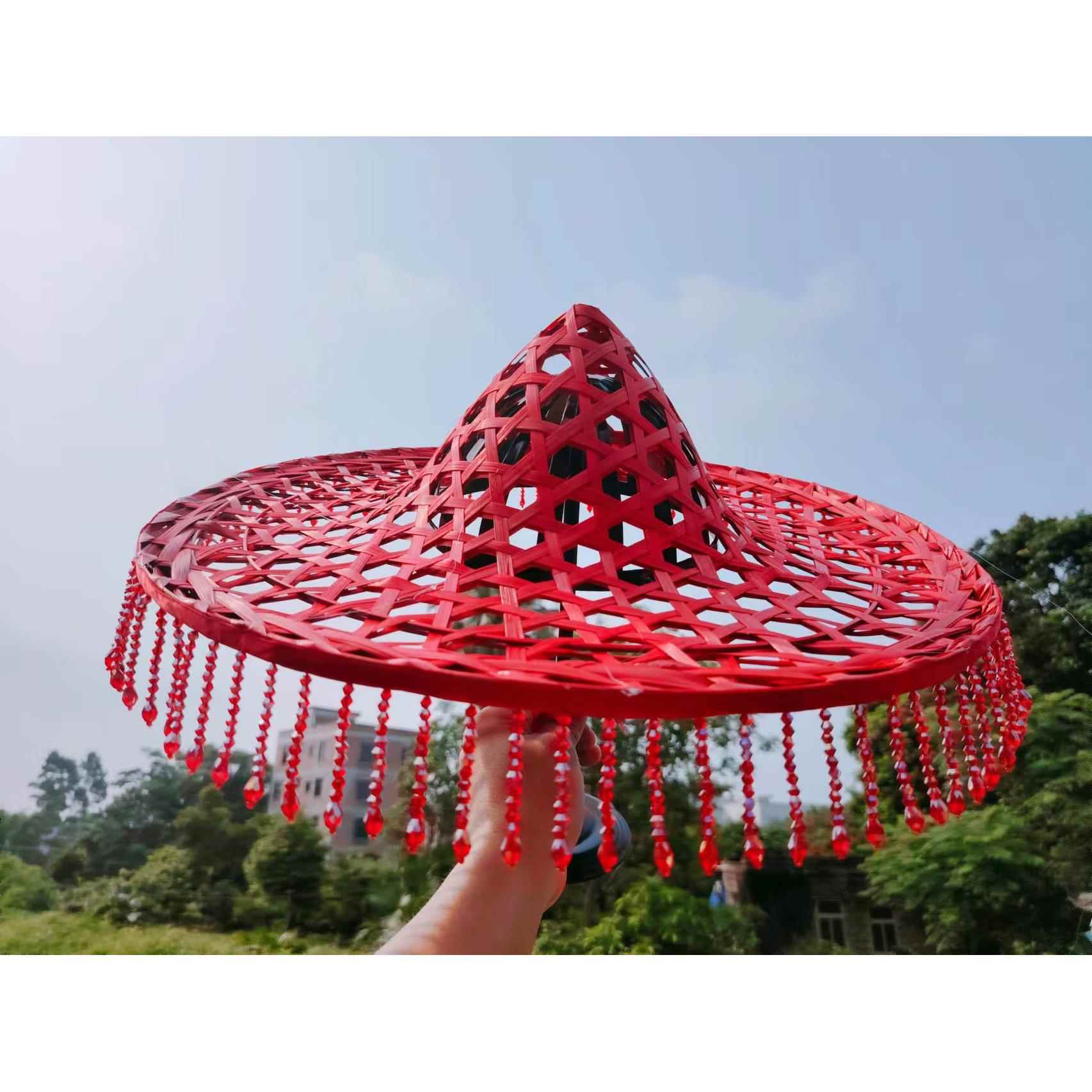 旗袍秀红色斗笠帽竹走秀道具舞蹈漓江美儿童成人帽子大号舞蹈草帽
