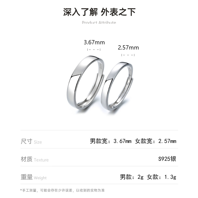 999纯银莫比乌斯环情侣戒指轻奢简约单身食指戒女开口小指环尾戒