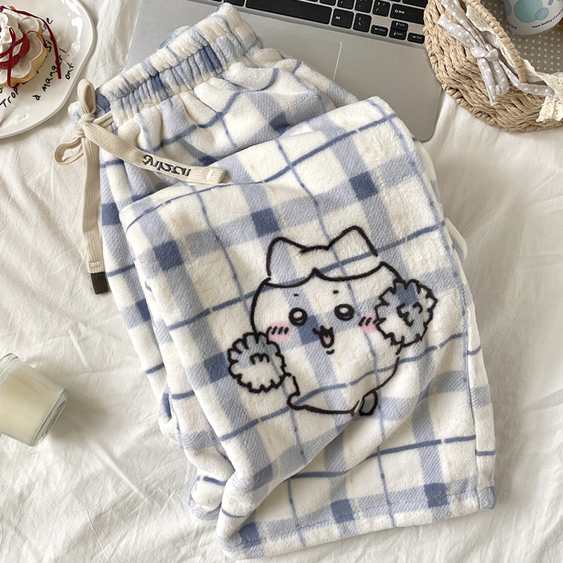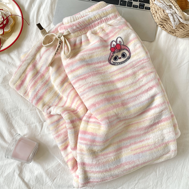 女冬季 法兰绒家居裤 长裤 子拉布布暖暖裤 加绒加厚单件裤 珊瑚绒睡裤