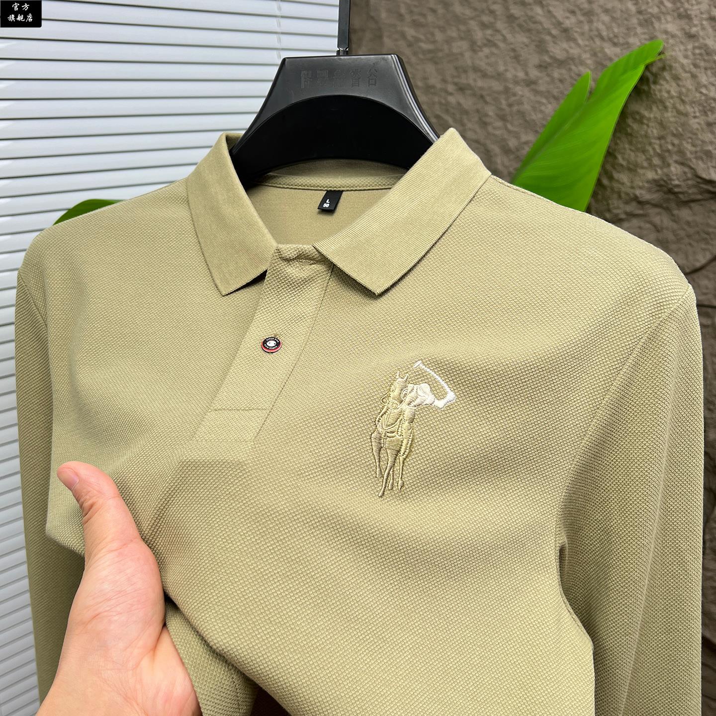 爸爸秋装 t恤2025新款 上衣中老年男装 爷爷秋季 中年男士 POLO衫 长袖