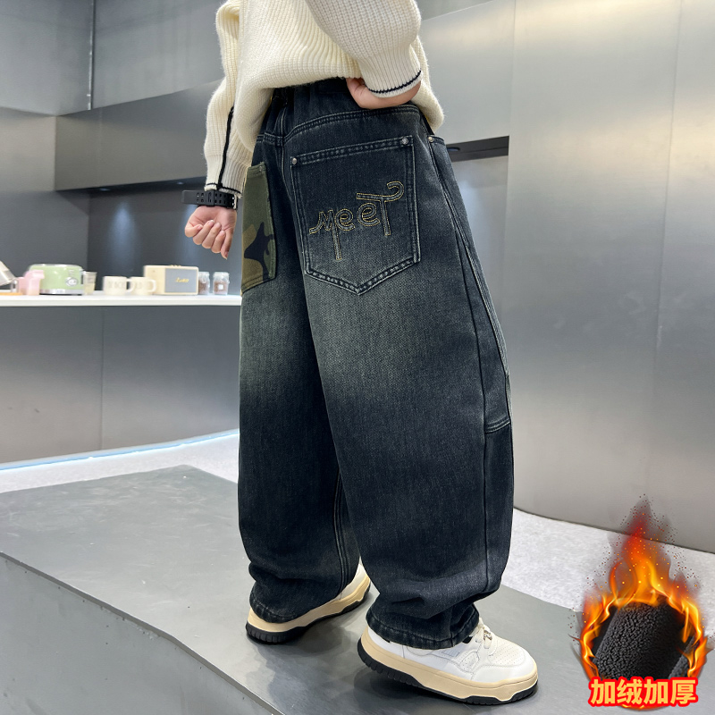 加厚男孩保暖牛仔裤 儿童装 冬装 子秋冬2025新款 中大童潮 男童加绒裤