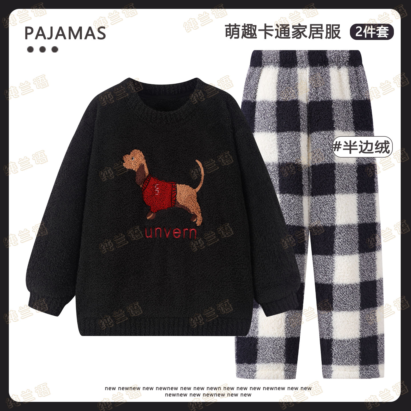红豆珊瑚绒睡衣女羊羔绒抗静电加厚桂花绒甜美保暖外穿家居服套装