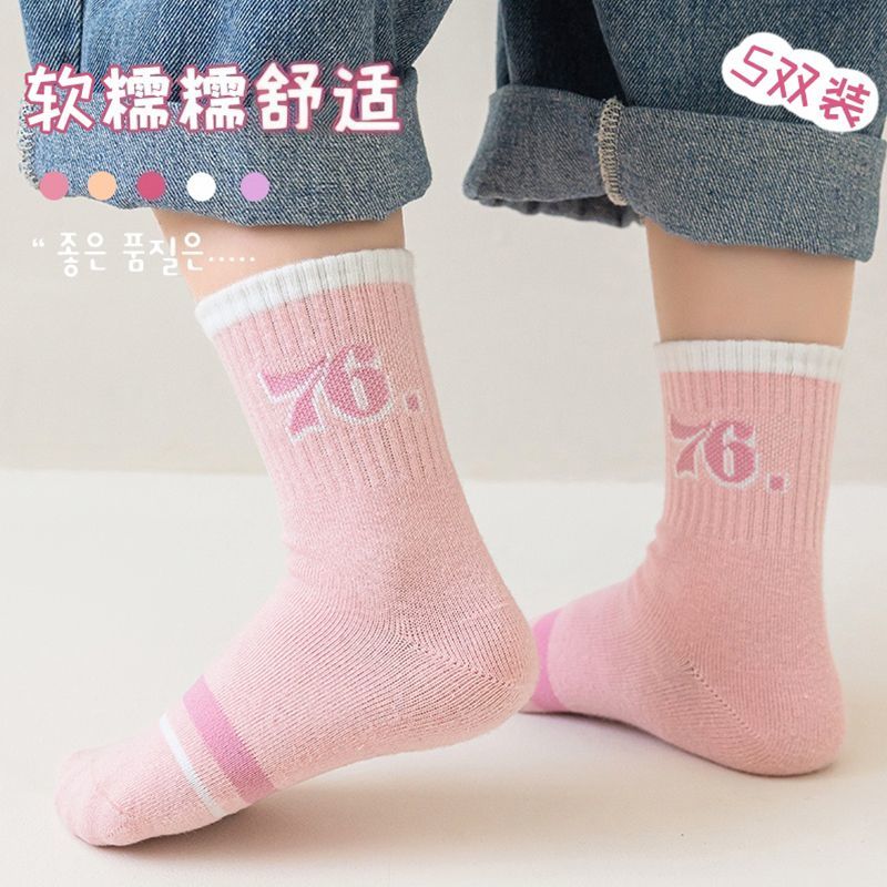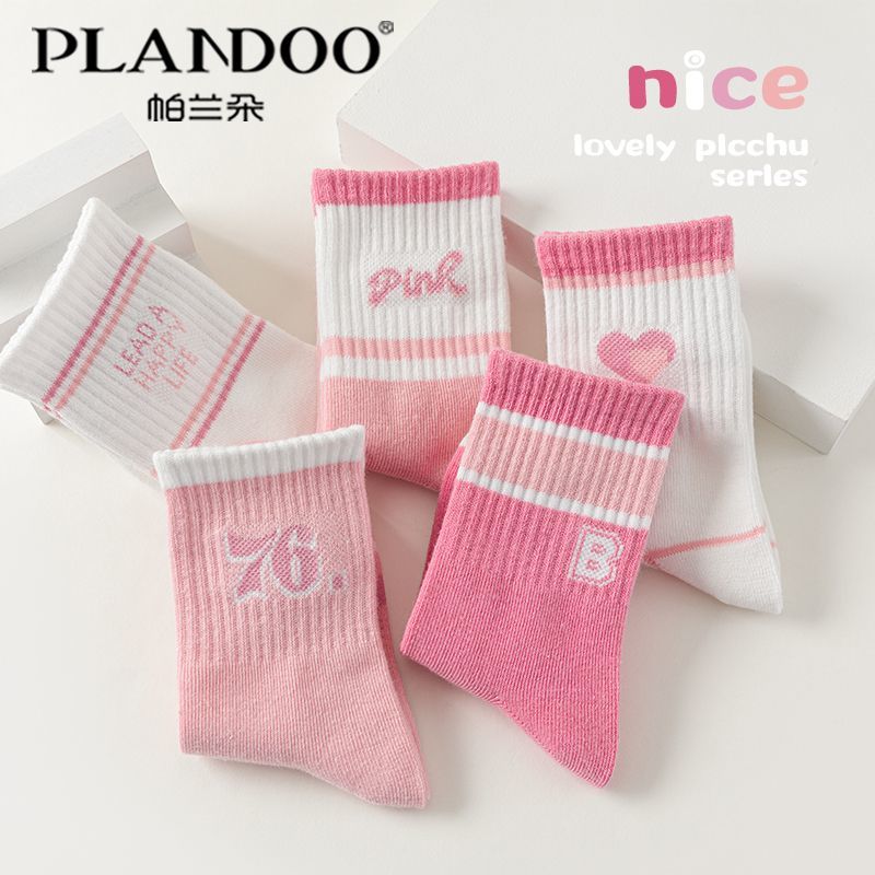 帕兰朵中筒棉质高弹亲肤舒适不勒童袜可爱甜美爱心童袜保暖粉色系