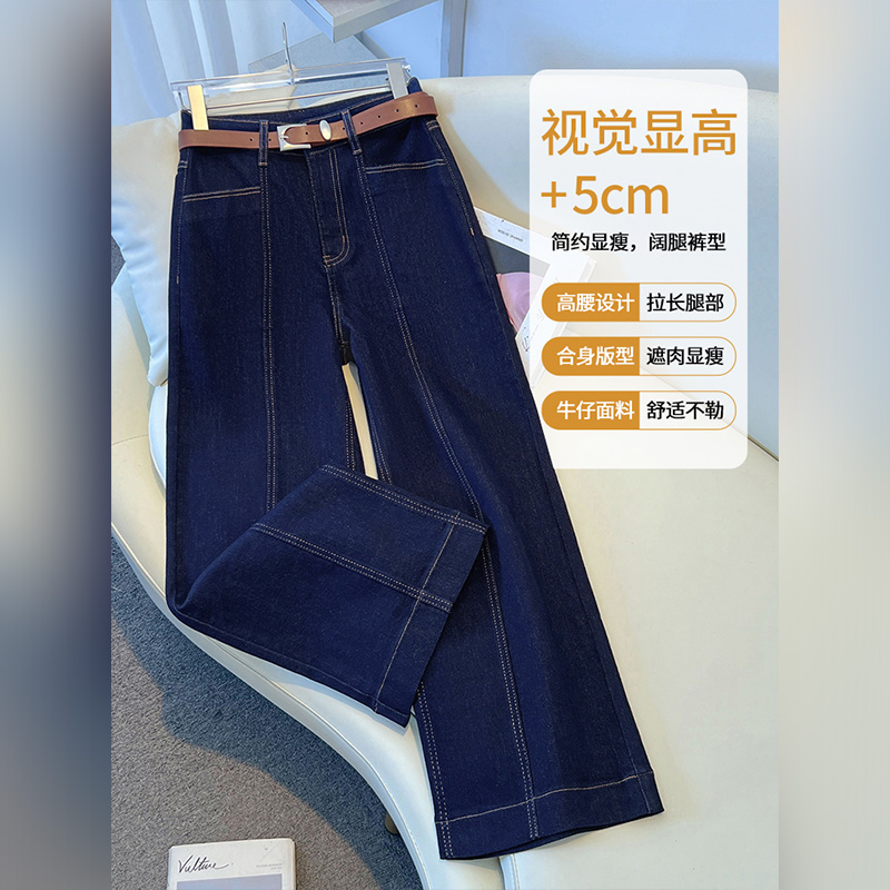 垂感宽松小个子九分裤 复古爆款 春秋2025新款 丹宁蓝直筒阔腿牛仔裤