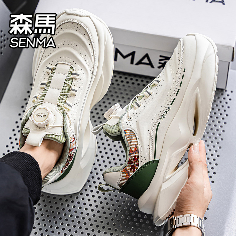 潮牌百搭运动休闲真皮跑步厚底增高老爹潮鞋 秋季 男鞋 森马网红爆款