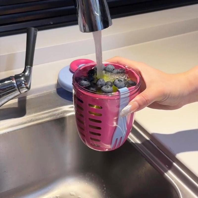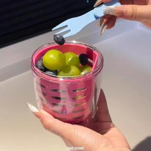 高品质水果杯便携带叉外带沙拉杯露营野餐上班族学生专用双层沥水