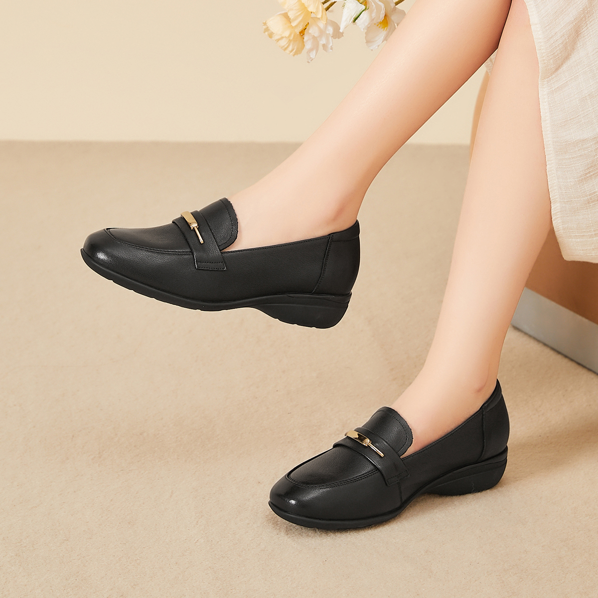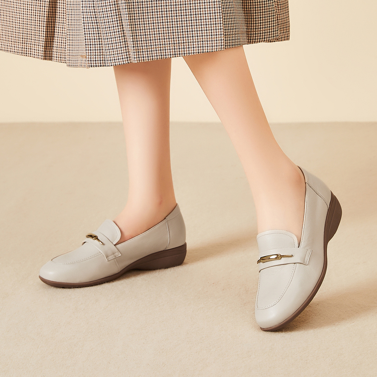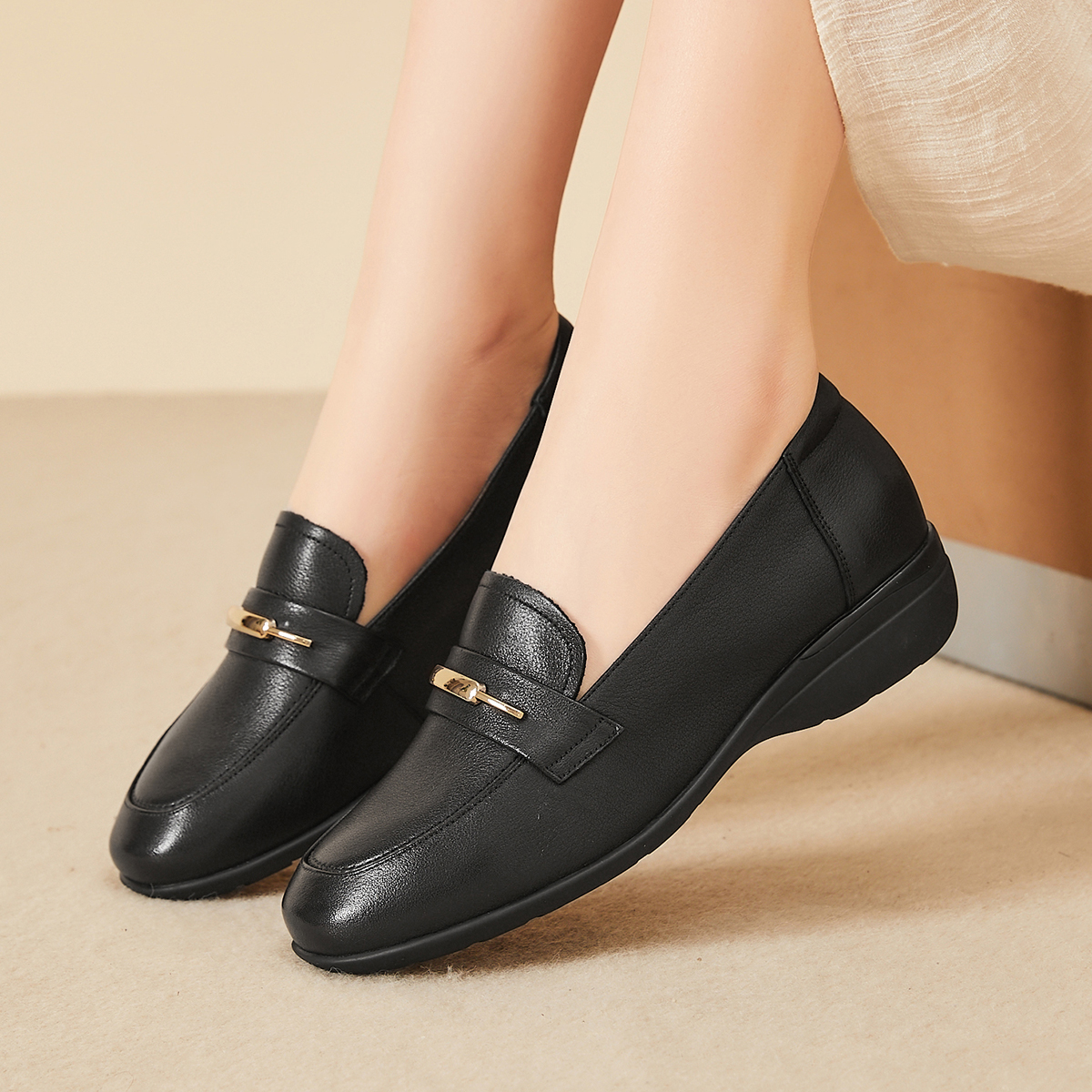 一脚蹬懒人通勤乐福鞋 兽霸女鞋 女平底单鞋 真皮软底豆豆鞋 2025新款
