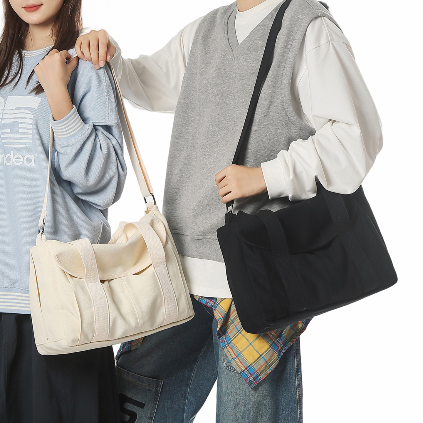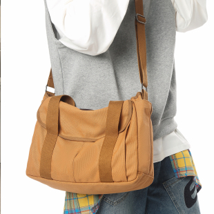 复古帆布托特包男女大容量斜挎包百搭通勤单肩包学生休闲上课包