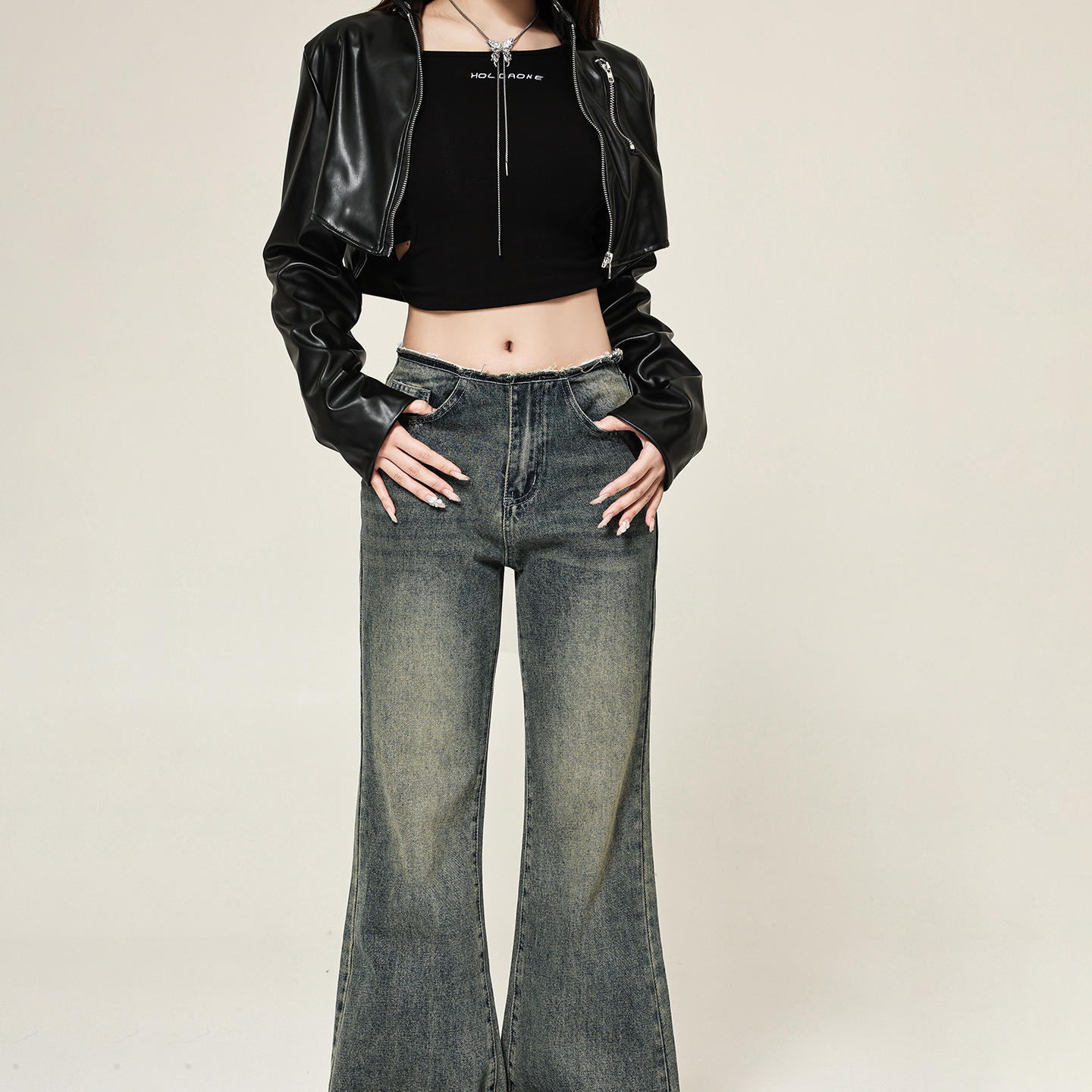 低腰辣妹显瘦不贴腿毛边喇叭拖地裤 美式 新款 女2025秋季 微喇牛仔裤