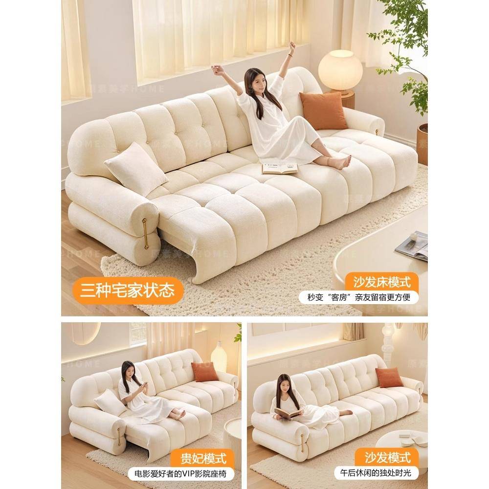 政府补贴真皮法式 奶油棉花糖布艺电动沙发床两用功能伸缩云朵沙发