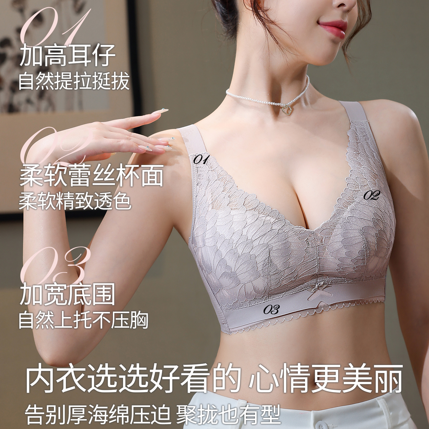 爆款 文胸2025新款 大胸显小收副乳聚拢防下垂无钢圈大码 内衣女薄款