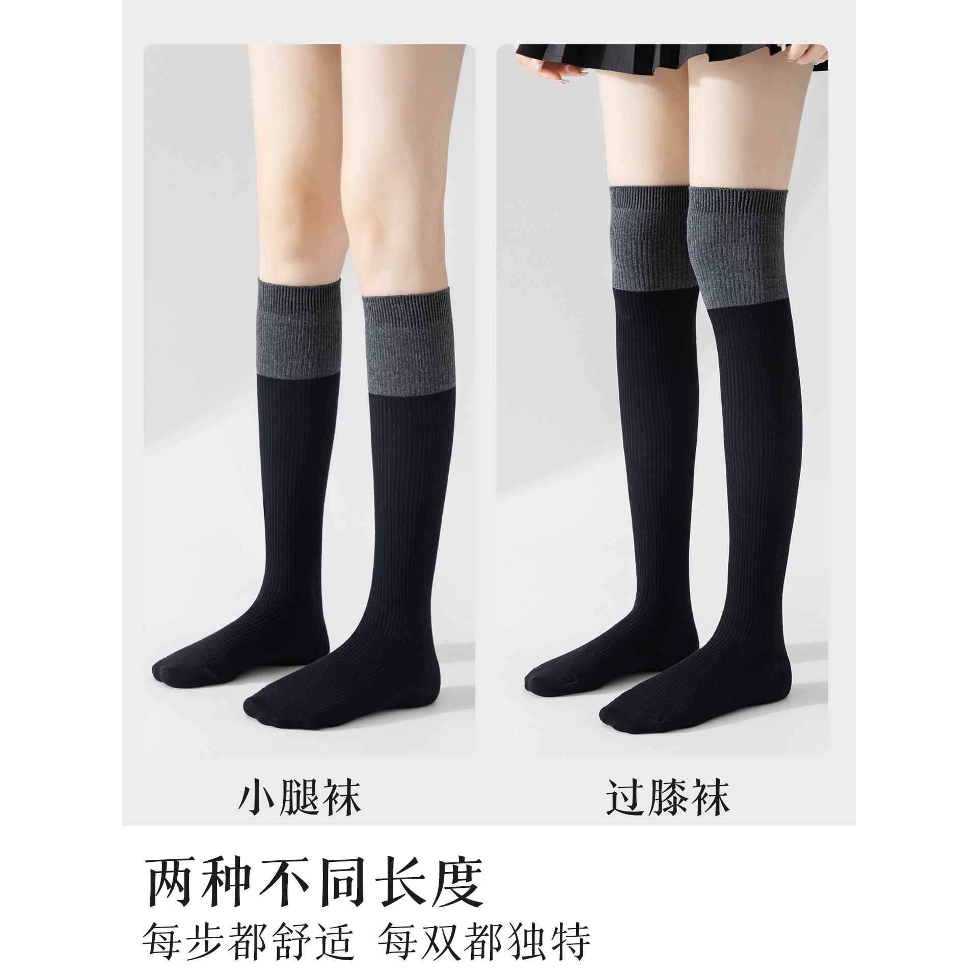 配小皮鞋 爆款 秋春 纯棉2025新款 灰色小腿袜压力配靴子长筒袜子女款