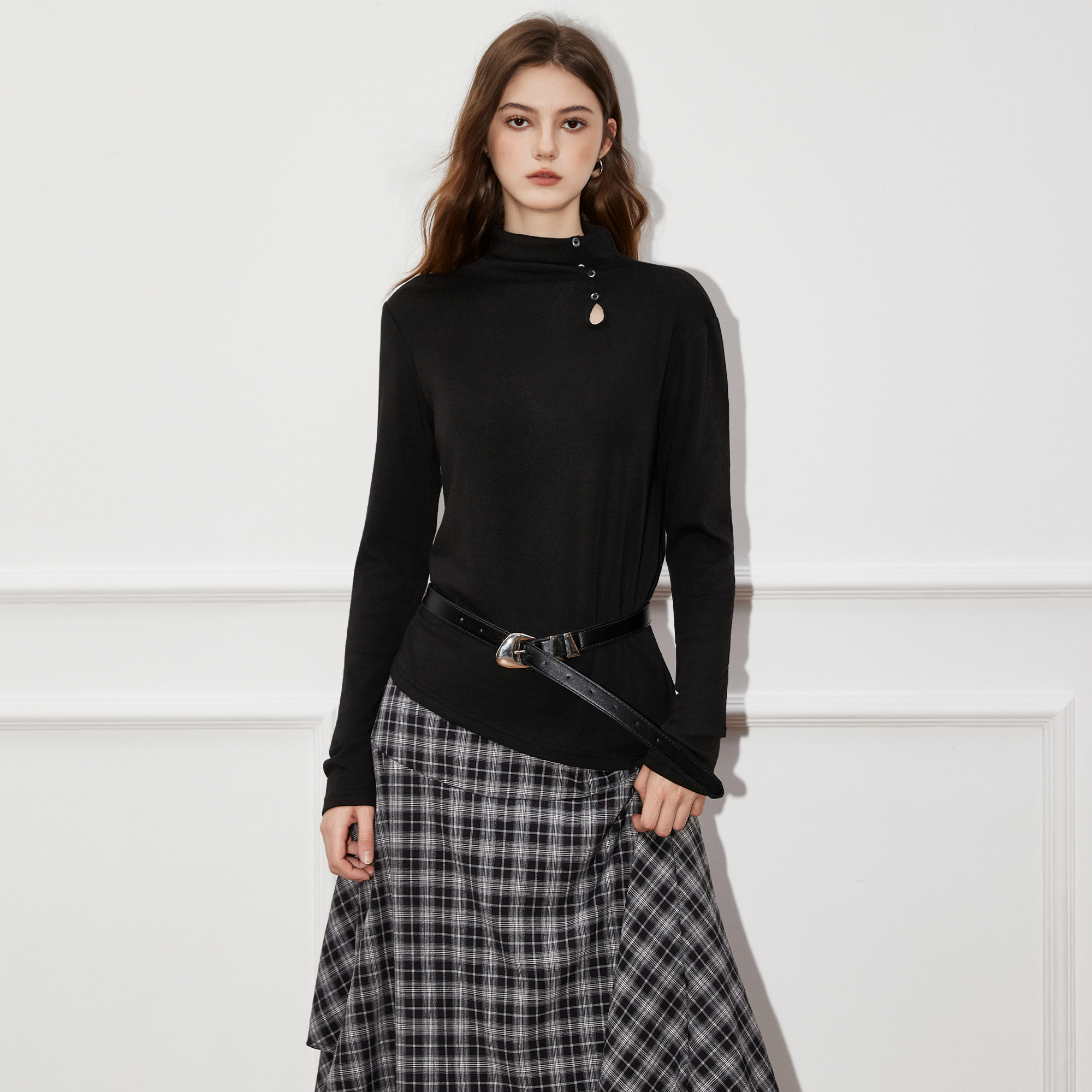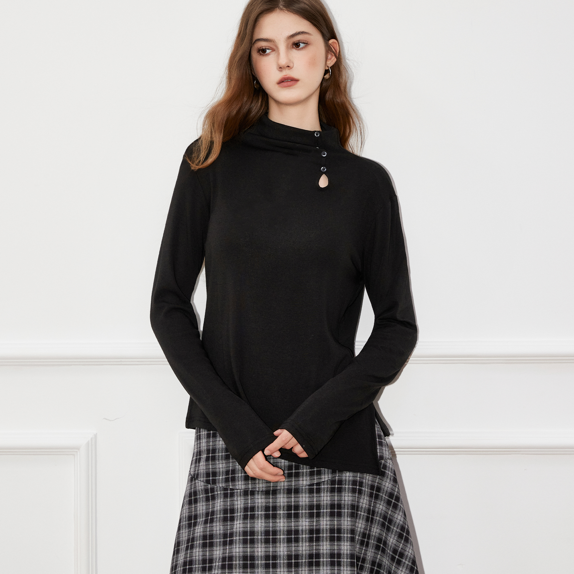 新款 Basic 女2025秋季 百家好黑色打底衫 巨好看针织打底上衣 House