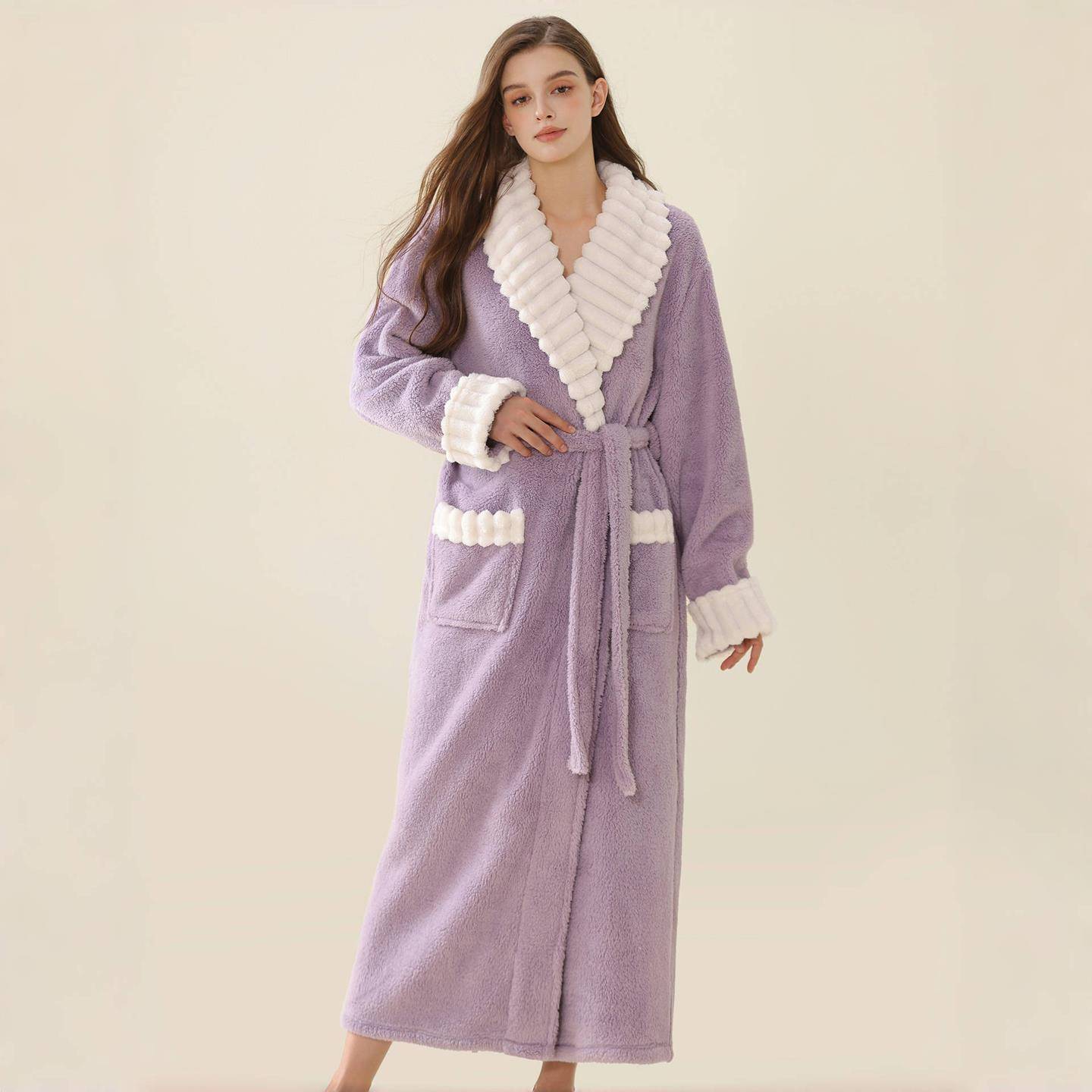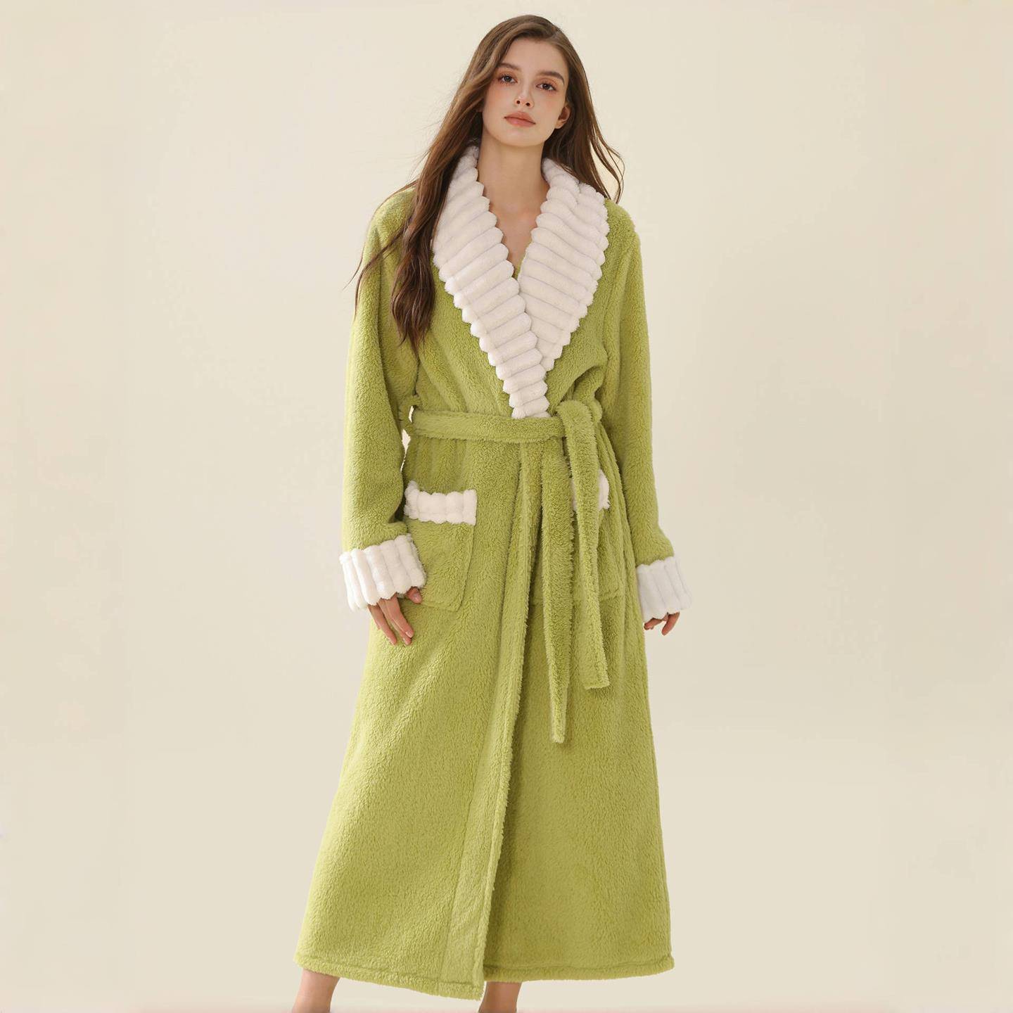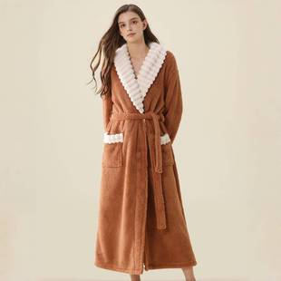 家居服2025新款 加长款 加厚加绒珊瑚绒睡1009c 秋冬季 秋冬睡袍女款