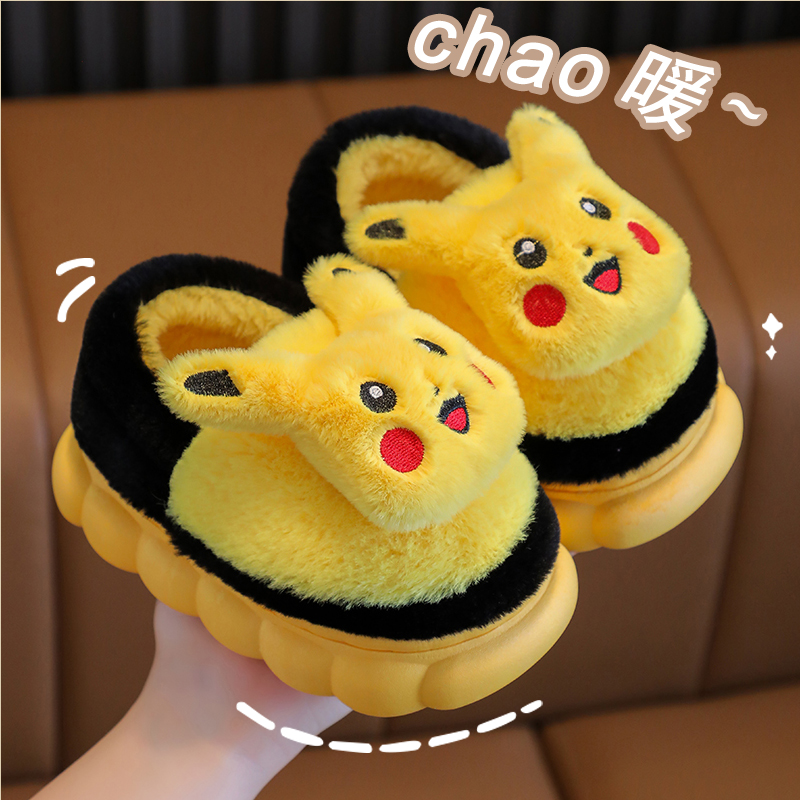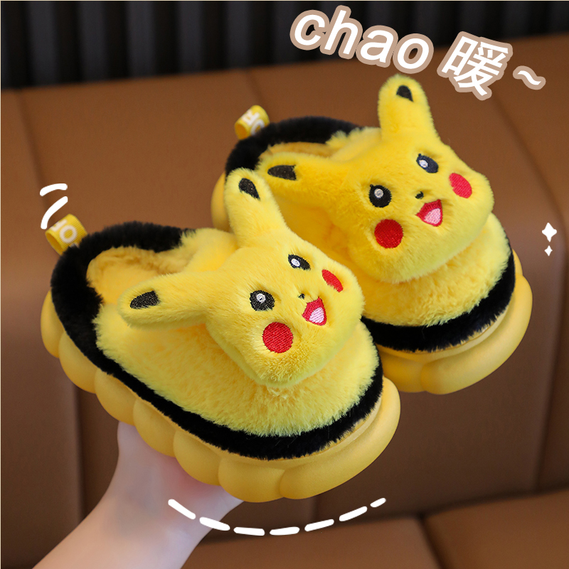 宝宝加厚底防滑棉鞋 2025新款 男女可爱皮卡丘毛毛鞋 冬季 儿童棉拖鞋