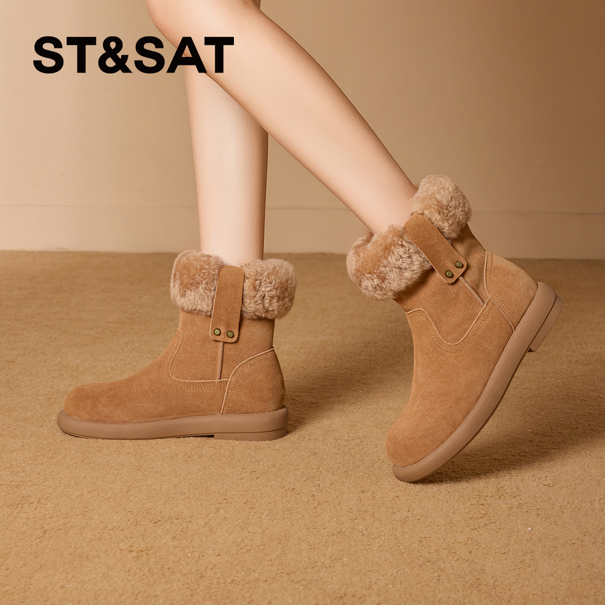 雪地棉防滑加绒加厚保暖棉鞋 星期六真皮厚底雪地靴女2025爆款 冬季