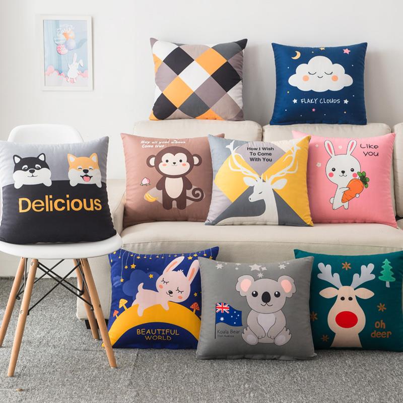 可爱卡通抱枕沙发靠垫办公室床头靠背汽车靠枕正方形抱枕套不含芯