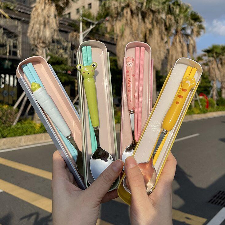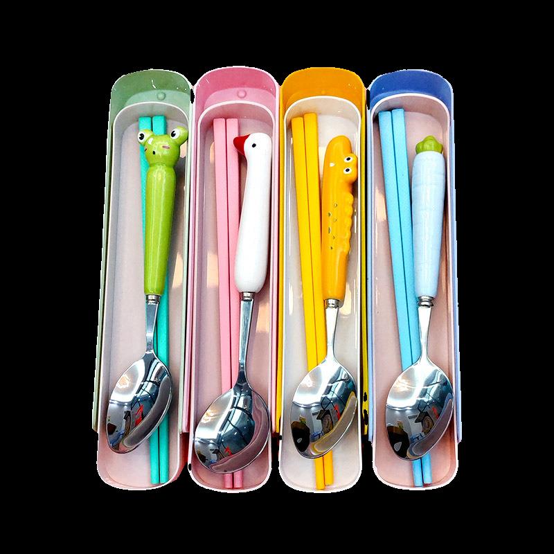 单人装 一人用收纳盒便携式 女学生 儿童可爱筷子勺子餐具盒套装 日式