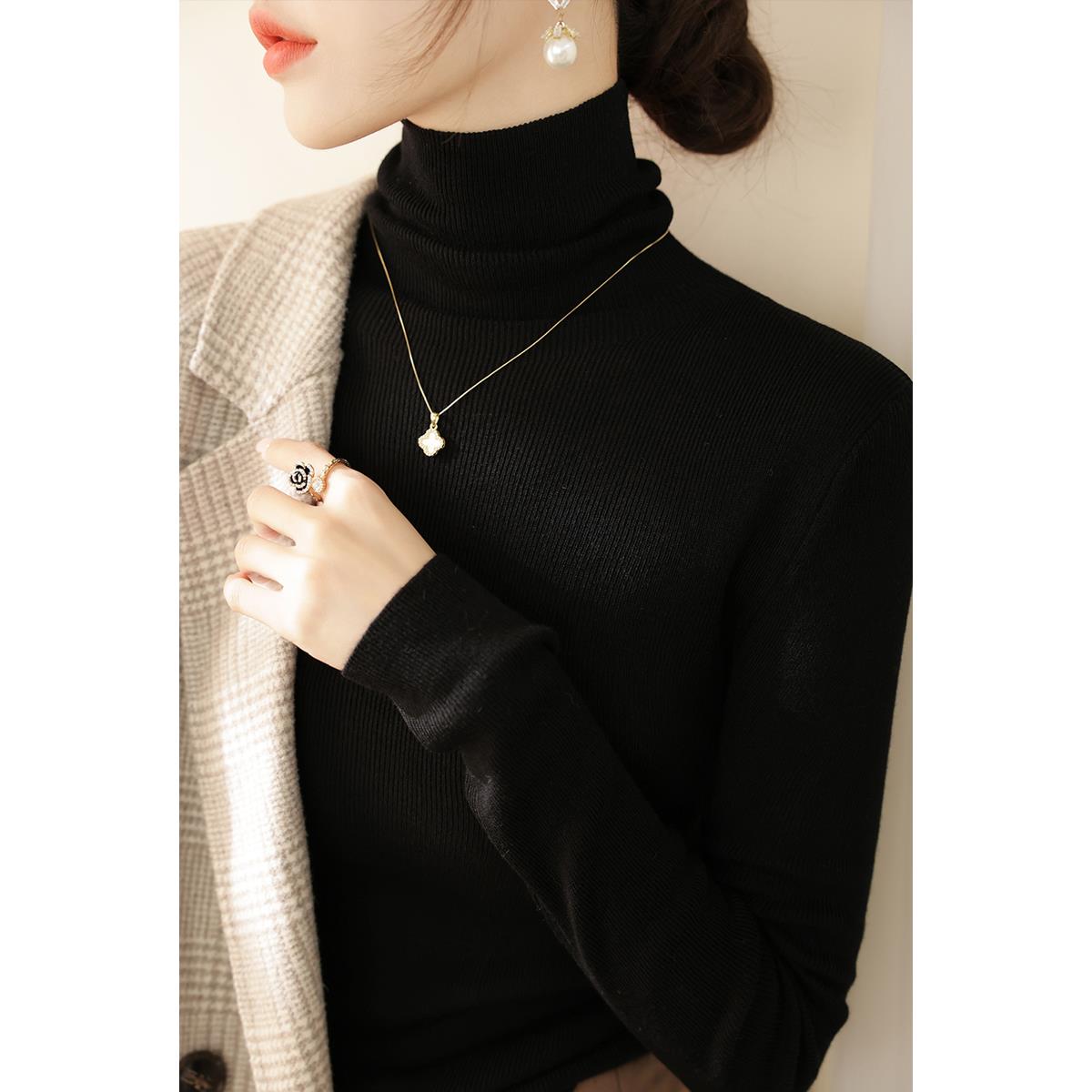洋气堆堆领针织1012h 新款 配大衣内搭黑色高领打底衫 毛衣女秋冬季