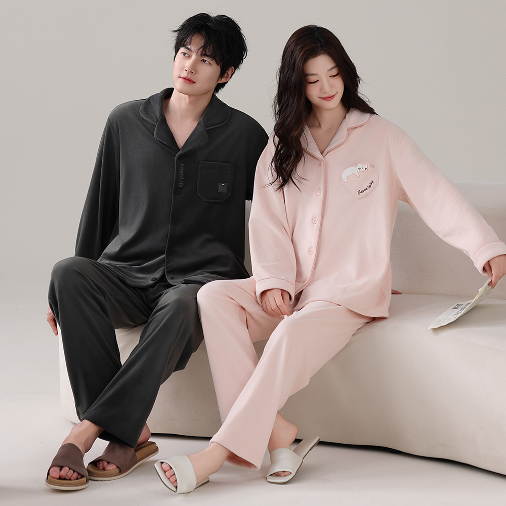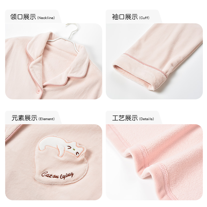 加厚珊瑚绒女士睡衣套装 秋冬加绒保暖法兰绒家居服两件套 简约长袖
