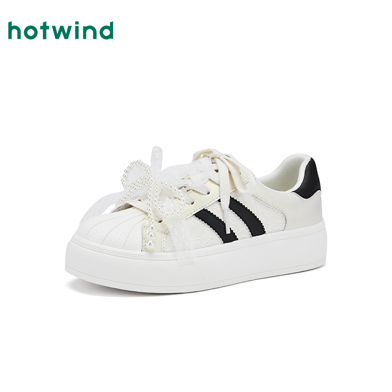 女款 轻便百搭女鞋 2025年秋季 复古珍珠蕾丝小白鞋 新款 热风厚底板鞋