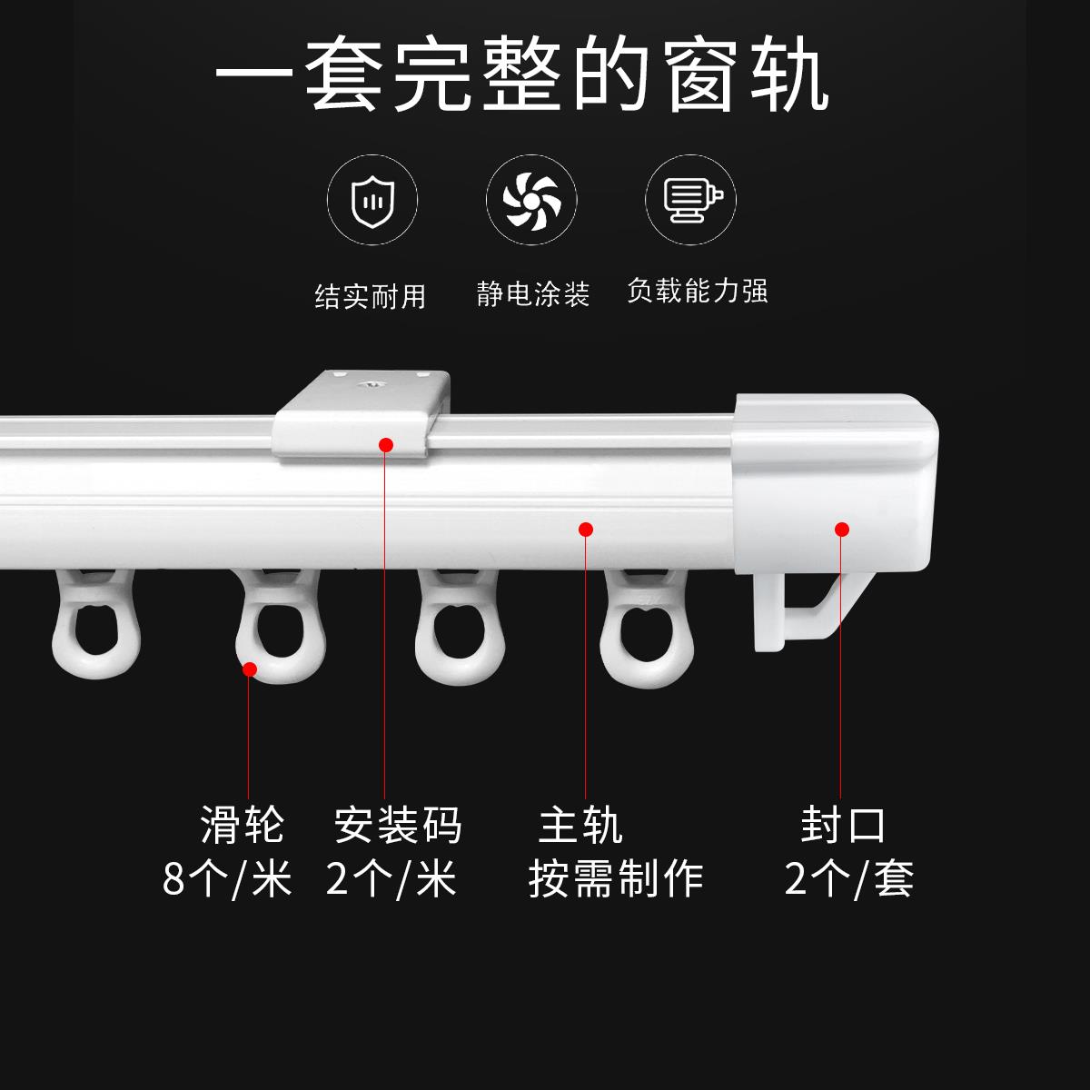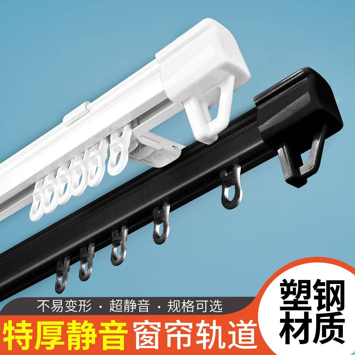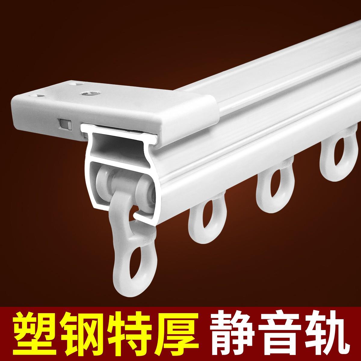 窗帘轨道顶装 导轨滑道单轨双轨直轨客厅加厚塑钢静音窗帘杆支架