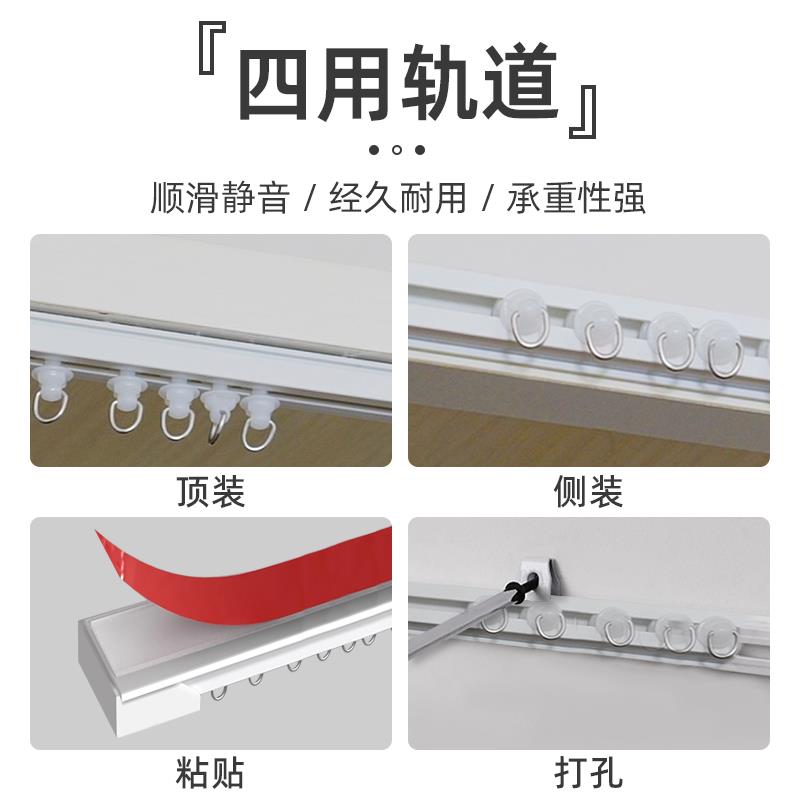 窗帘轨道顶装 滑轨静音滑道挂钩窗帘杆门帘柜子帘直轨导轨 单轨侧装
