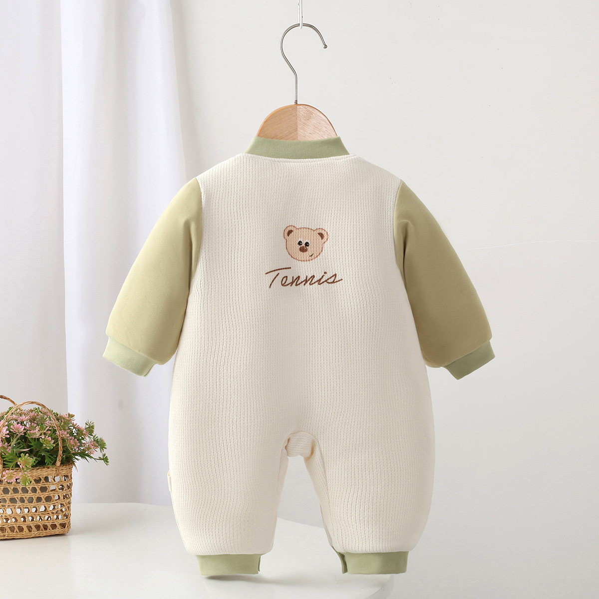 婧麒新生婴儿衣服秋冬夹棉保暖连体衣满月宝宝加厚冬装 偏开蝴蝶衣