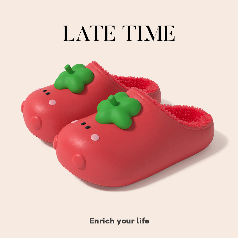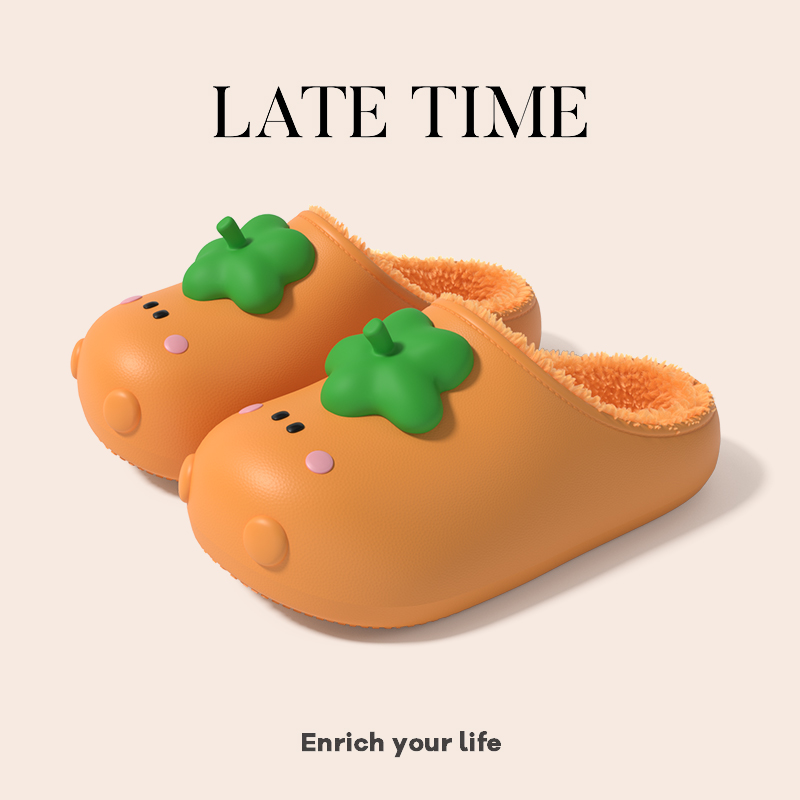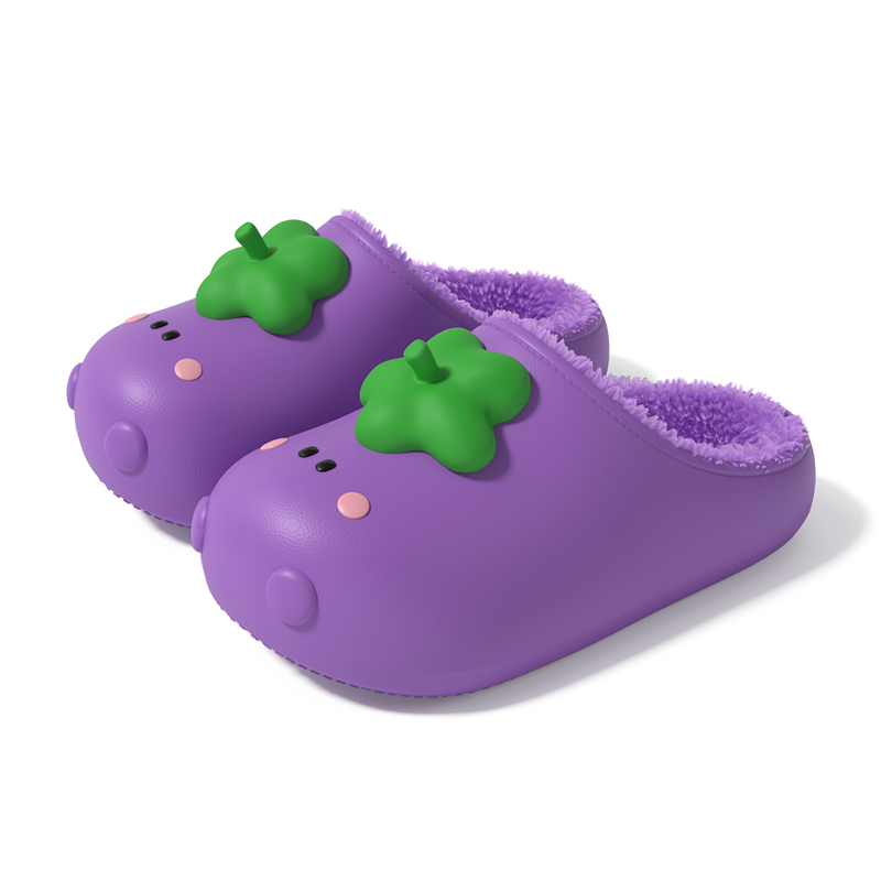 男 室内家居保暖情侣毛毛拖鞋 latetime可爱茄子防水棉拖鞋 女秋冬季