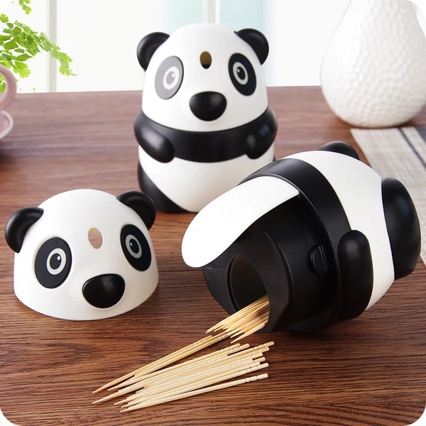 卡通熊猫牙签筒自动创意可爱牙签盒家用客厅牙签罐便携弹出实用