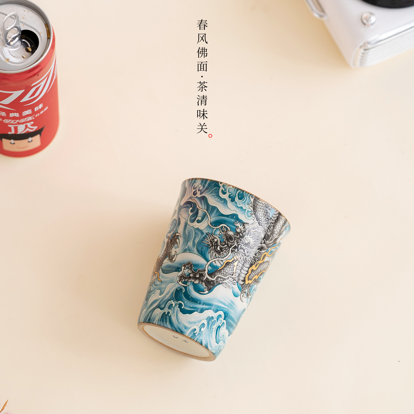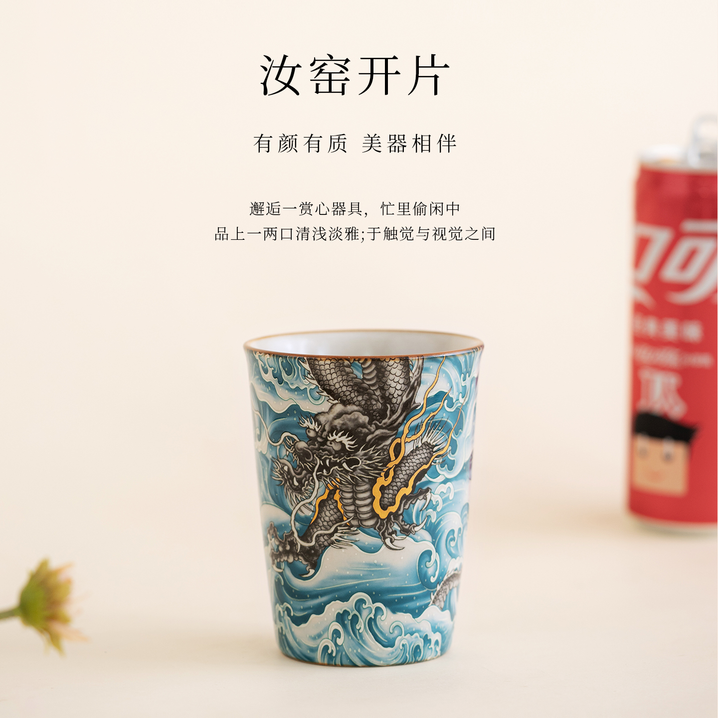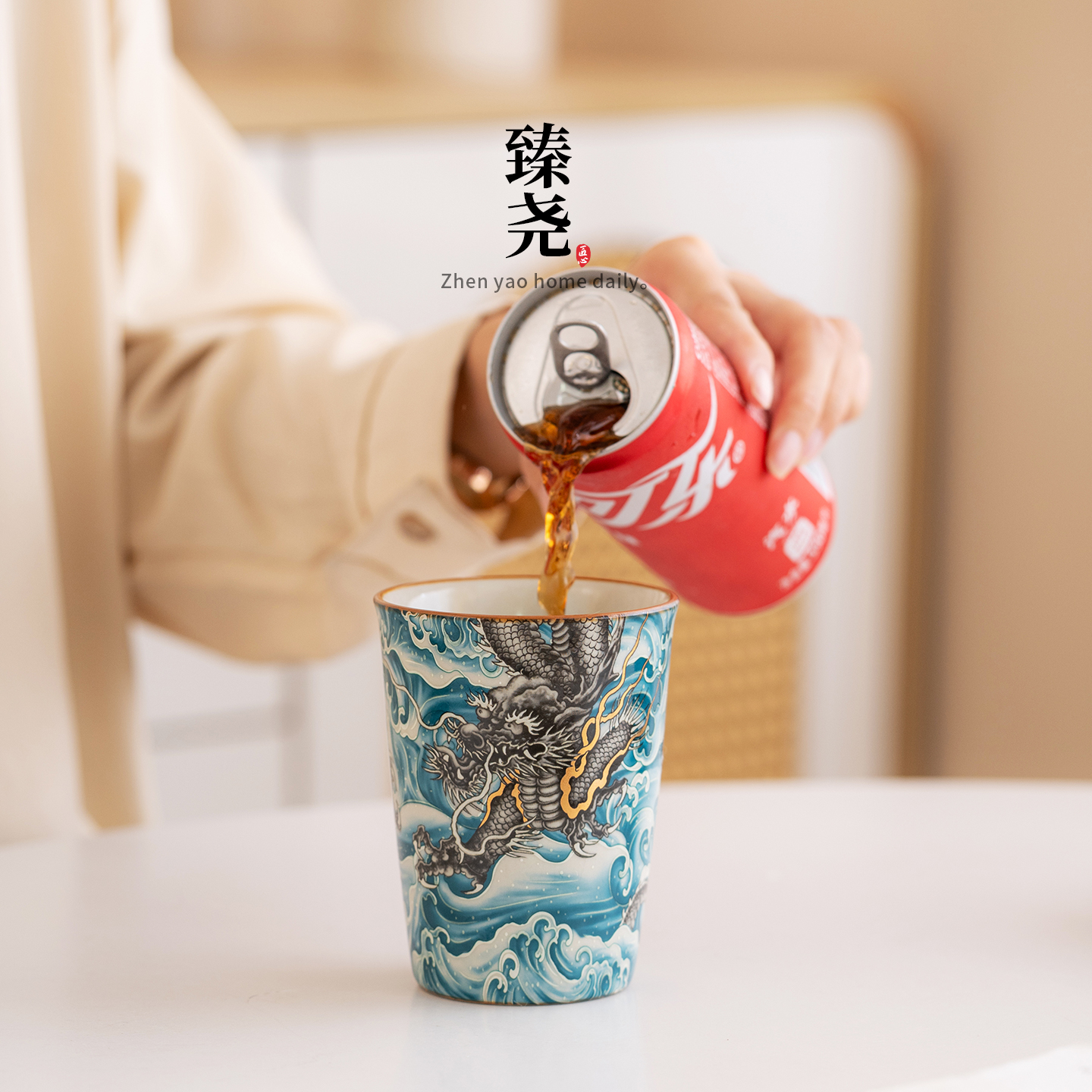 老式 陶瓷杯带盖食品级茶杯怀旧复古陶瓷水杯咖啡杯大容量马克杯