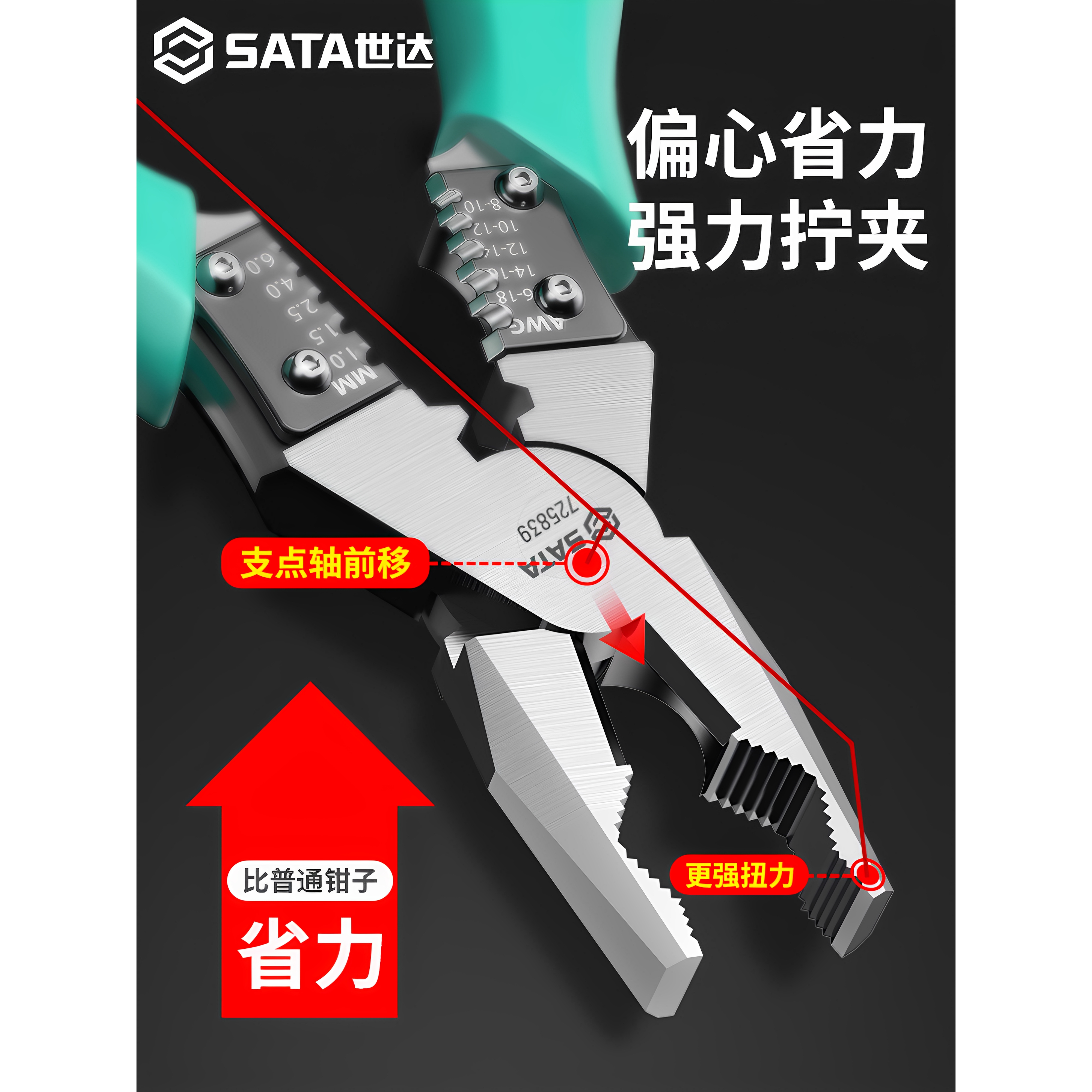 世达老虎钳钢丝钳多功能家用老虎工具大全电工专用斜口尖嘴手钳子