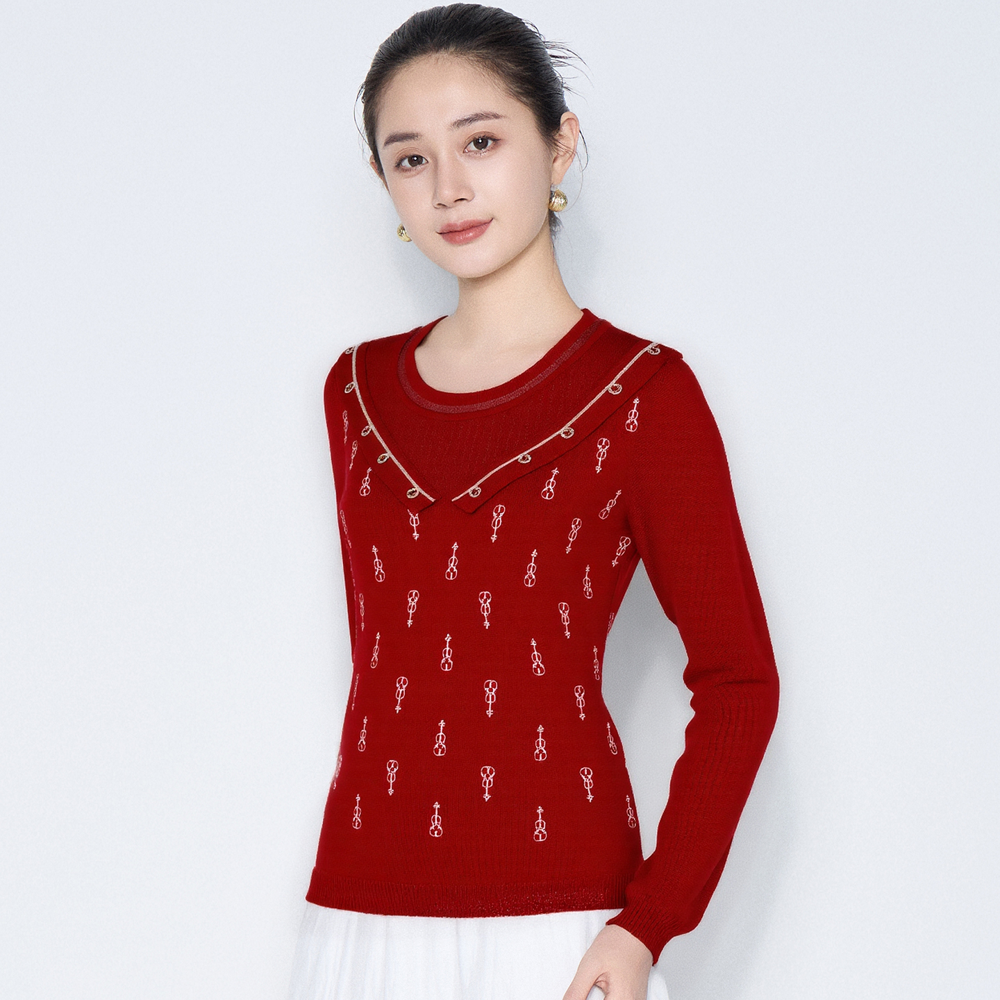 绞花肌理圆领毛衫 森柔 短款 女冬季 百搭叠穿打底上衣 森马针织开衫