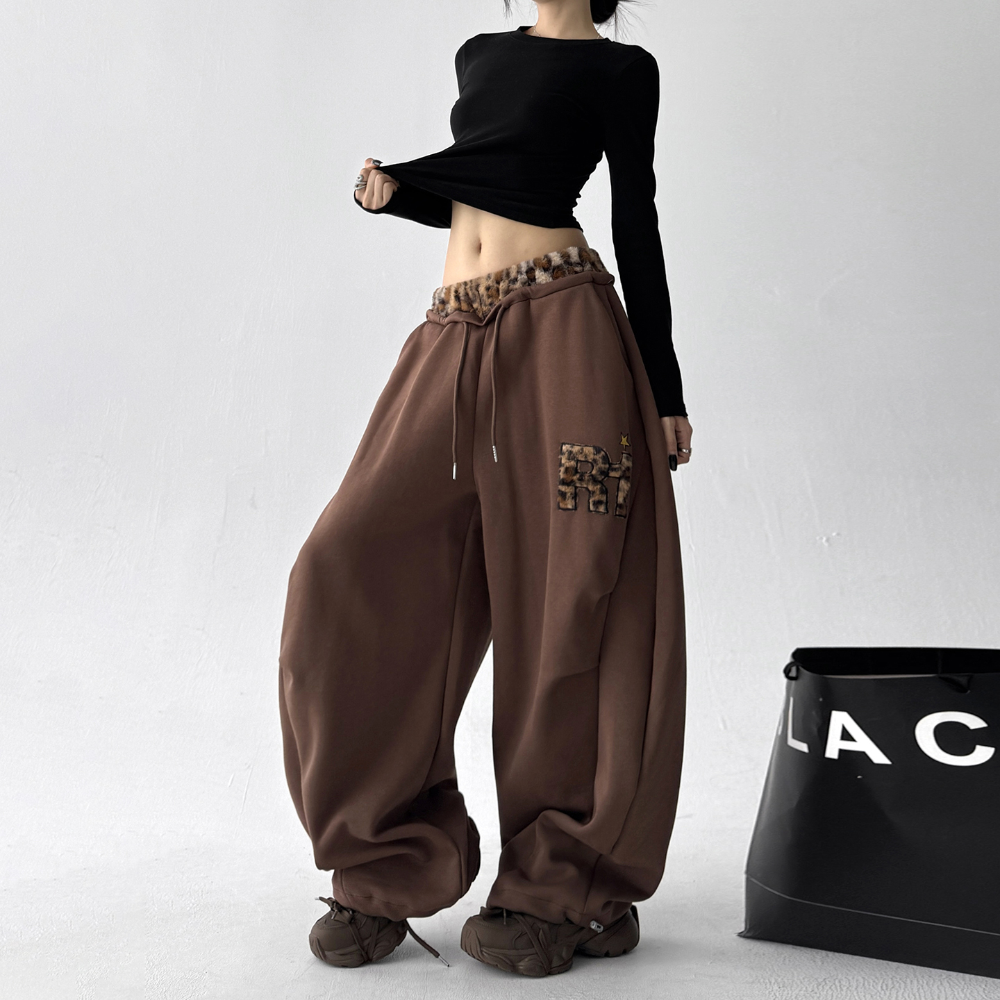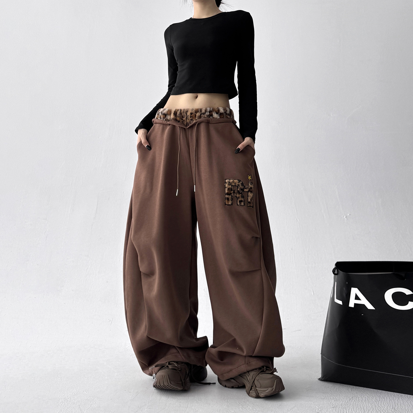 宽松显瘦百搭直筒阔腿休闲裤 美式 新款 女2025秋季 潮 复古休闲裤