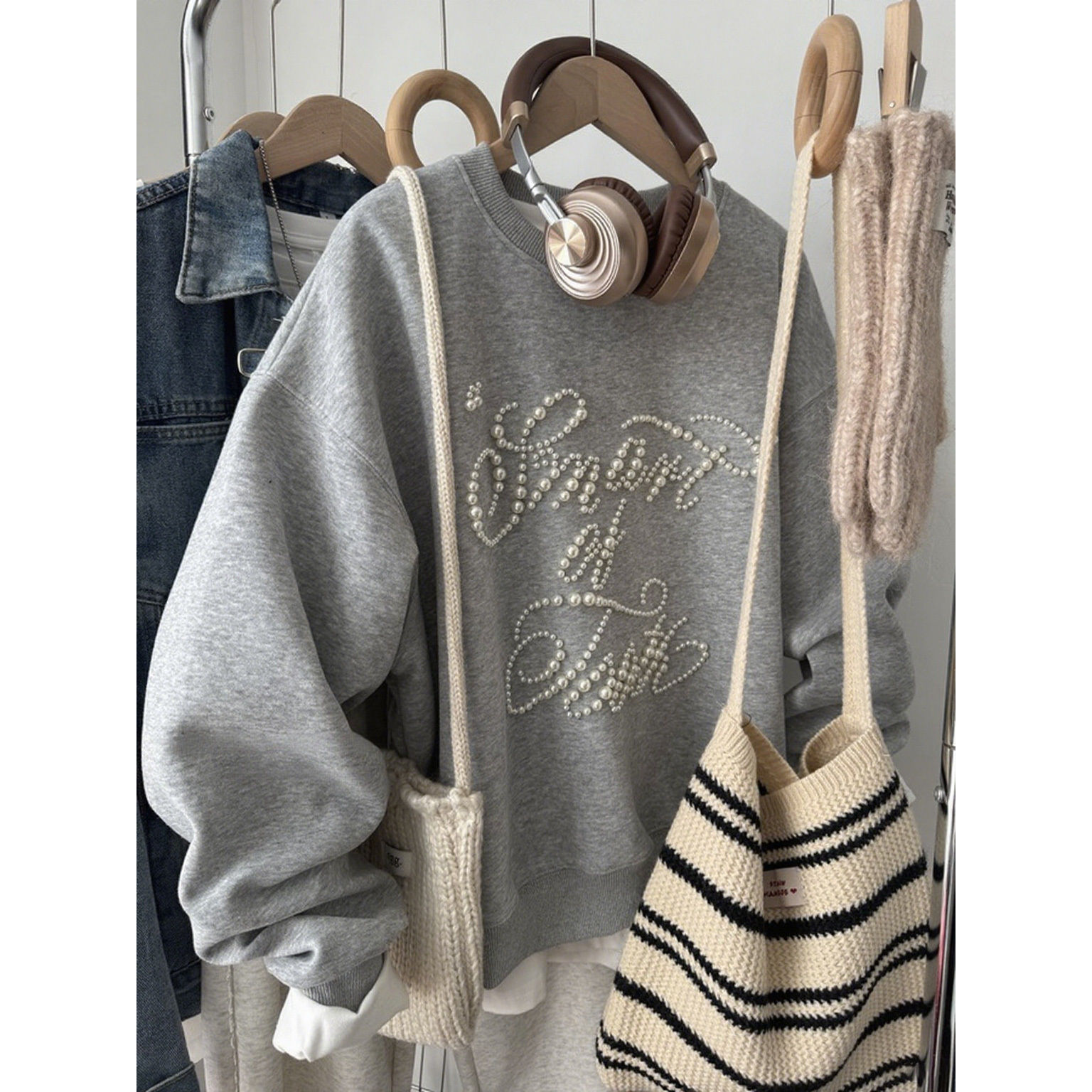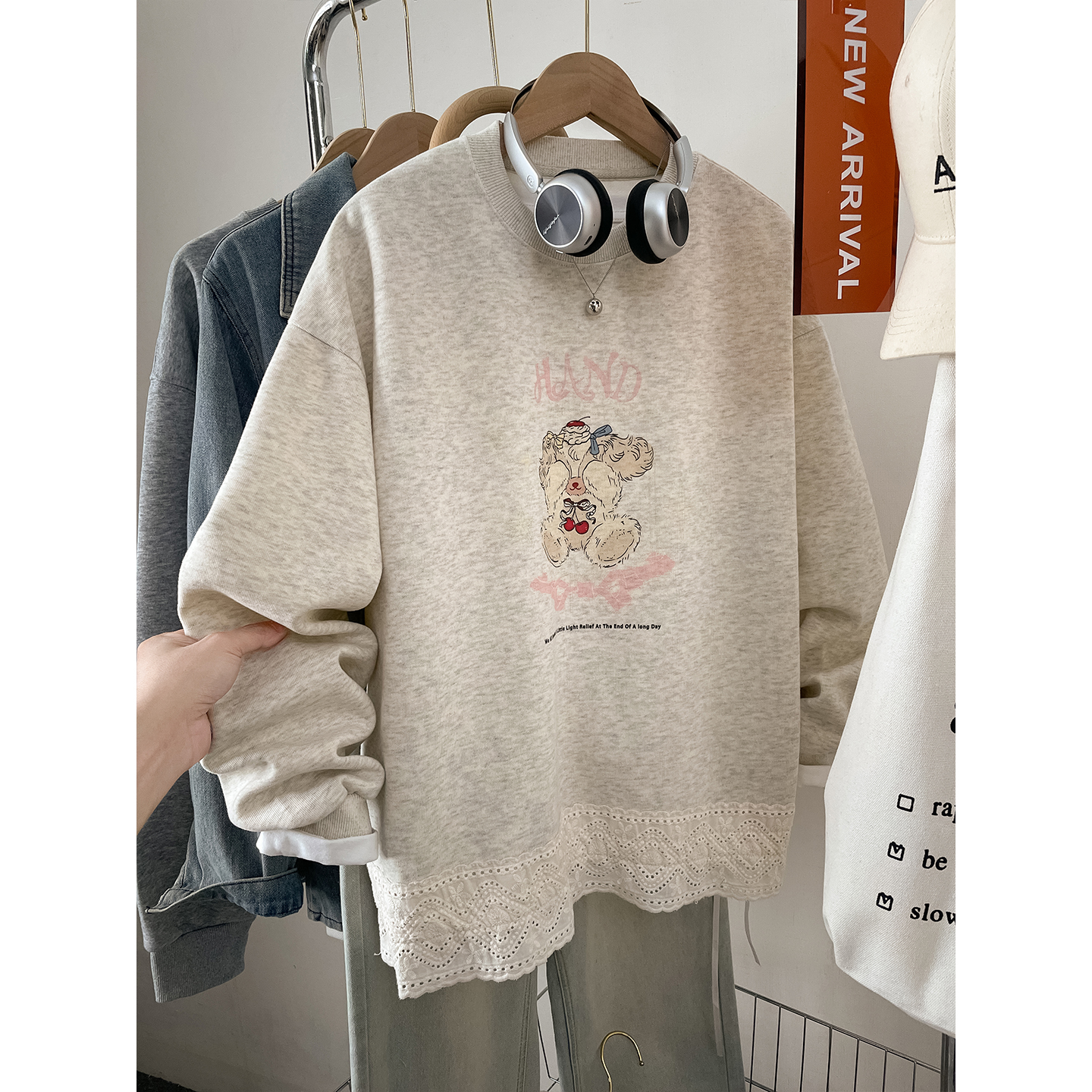 200斤胖mm刺绣蝴蝶结小个子圆领大码 宽松山东即墨卫衣女春秋薄款