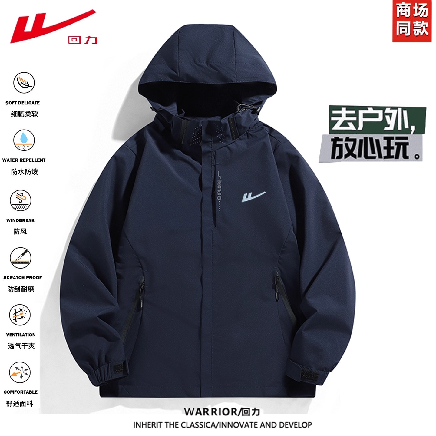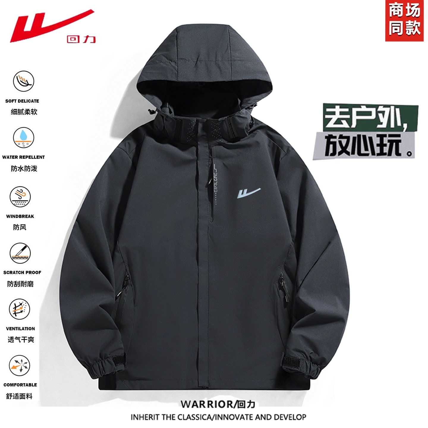 单衣外套定制 户外宽松连帽防风夹克情侣款 回力春秋款 冲锋衣男女款