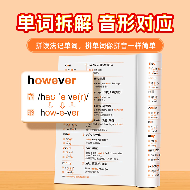 初中英语单词随身记2500词汇七八九年级课本核心词汇拆解速记中考单词口袋书词根联想记忆法语数英数理化学习手册 新版 易蓓