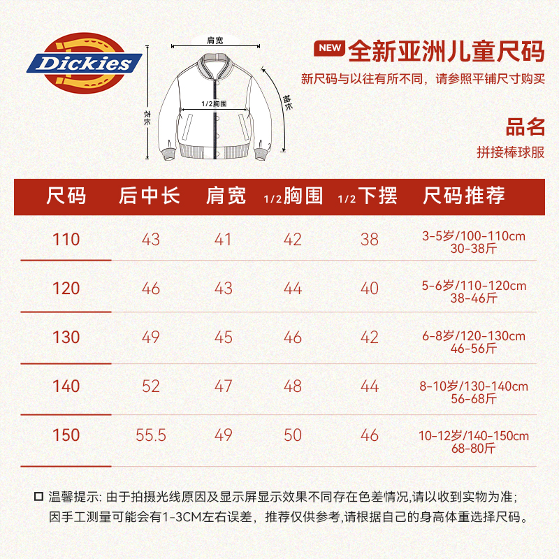 衣服女童学院风棒球服上衣A 2025新款 Dickies童装 男童外套儿童秋季